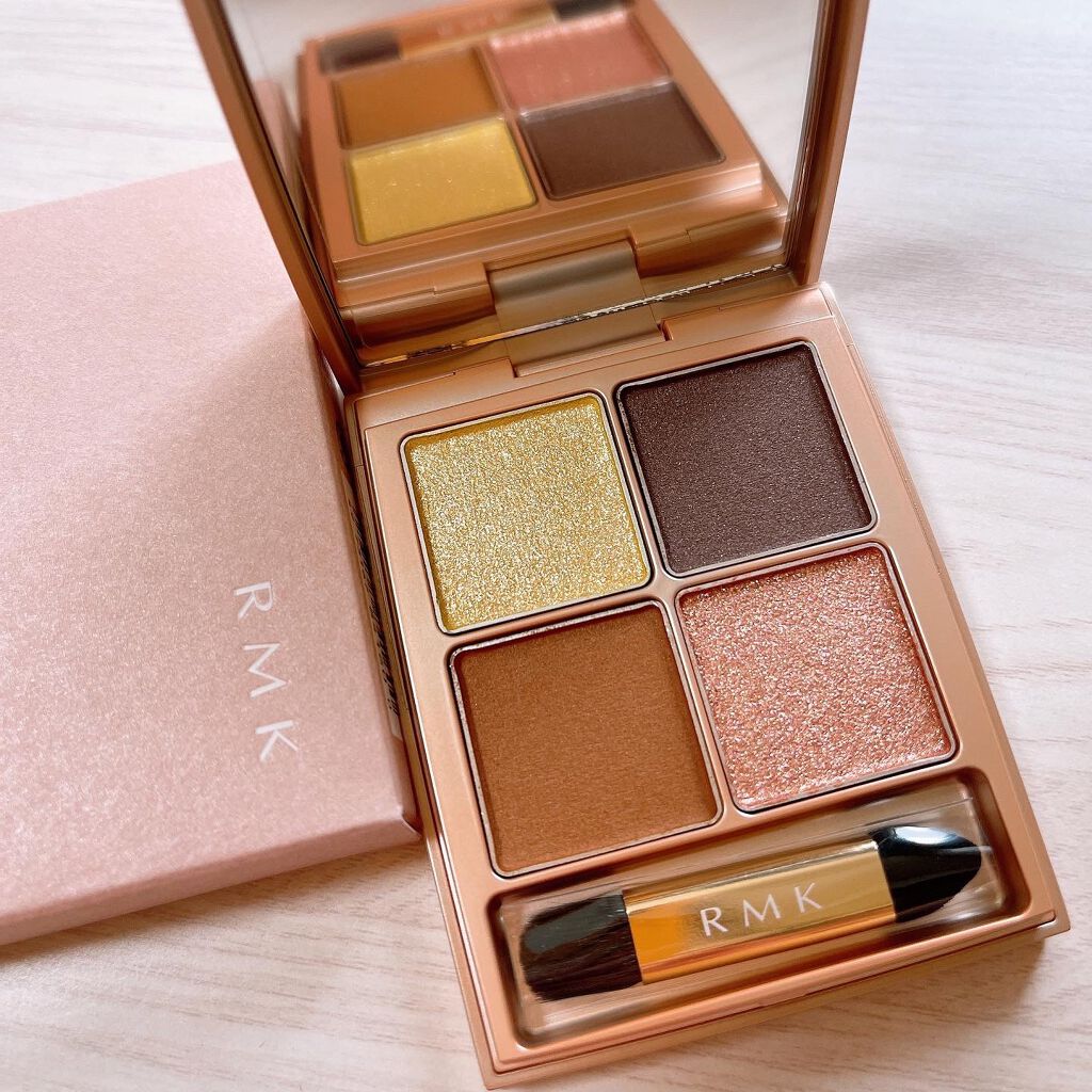 昨日に引き続きRMK8月6日発売 数量限定秋コスメローズウッドデイドリーム4アイズ03ゴールデンシエナ空がオレンジに染まりはじめる情景をイメージしたパレット✨左上のゴールドと右下のピンクオレンジのようなカラーに惹かれて追加買い❤️ラメがキラキ...