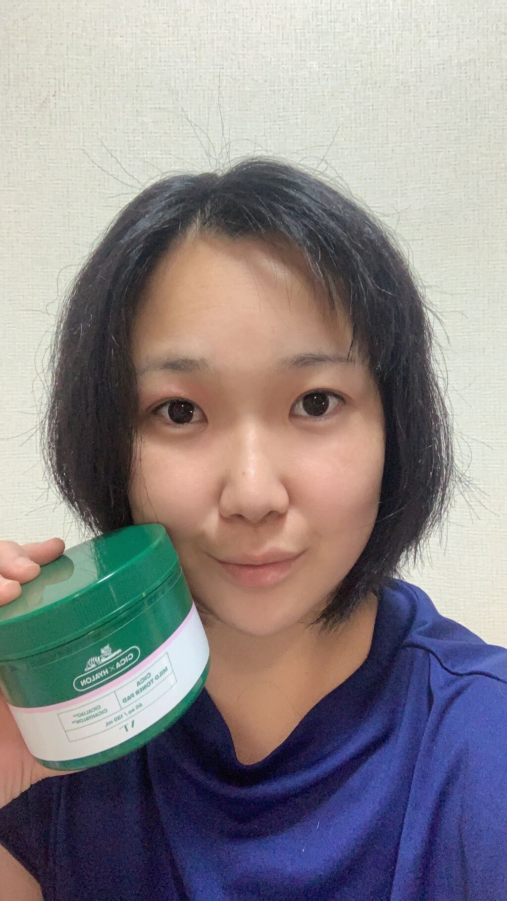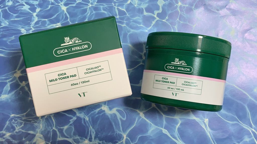でこぼこのエンボス面で不必要な角質や毛穴汚れなどを拭き取れるトナーパッド! 朝ぬるま湯で顔を洗ってから、メイク前にトナーパットで拭き取るのが大好き🌟 夜のケアだと、赤みやポツポツニキビが気になる部分にパットを抑えて部分用パックとして使うのも好き!! VTのCICAはとにかく肌荒れが気になる時 (赤みやニキビ)に使用するのがおすすめ🌿💚