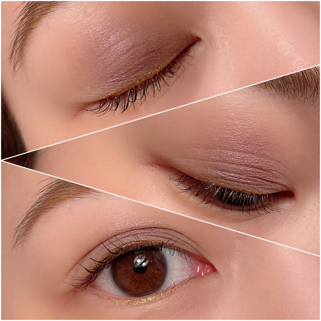 ほのかな発色と偏光パールで、目元に透明感を出してくれるブルー。 クリームタイプですが広げてもムラにならず、瞼にピッタリ密着してくれます。 マット感のあるディープパープルは、重ねる量を調整することで、色っぽさに変化が! ディープと言えども、どこか柔らかさもあるお色なので、女性の優しさをしっかり演出してくれます。 まずは、ブルーを瞼全体に広げます。 次に、細めの筆でパープルをアイラインのように引いていきます。 ここからはなりたい色っぽさに合わせてパープルの度合いを調整していきます。 もし、パープルを入れる範囲が広くなりすぎてしまった時は、上からブルーを重ねると良いですよ。 テクニック要らずで、ここまでアンニュイな目元が作れるこのアイシャドウ、本当に凄い👏