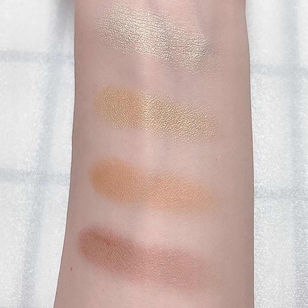 順番に重ねるだけでグラデが作れる”ちふれ”のアイシャドウ♪ 見たままカラーに高発色してくれて大好き! 右上のアクセントカラーがすっごくゴージャスなの。鮮やかなゴールドでハツラツとした印象に仕上がるよ♡ チップが白いから、同じ色は同じ面で塗りたい人にもオススメ〜🥹