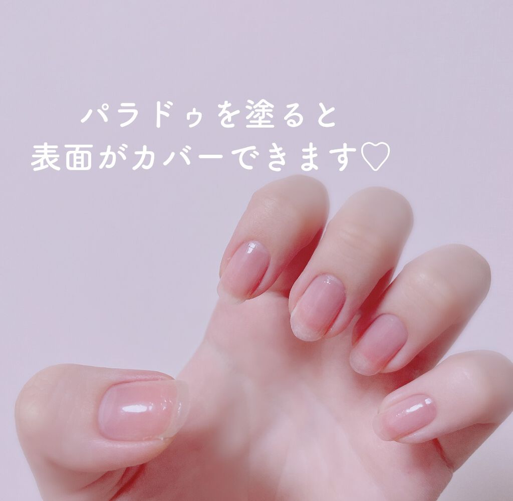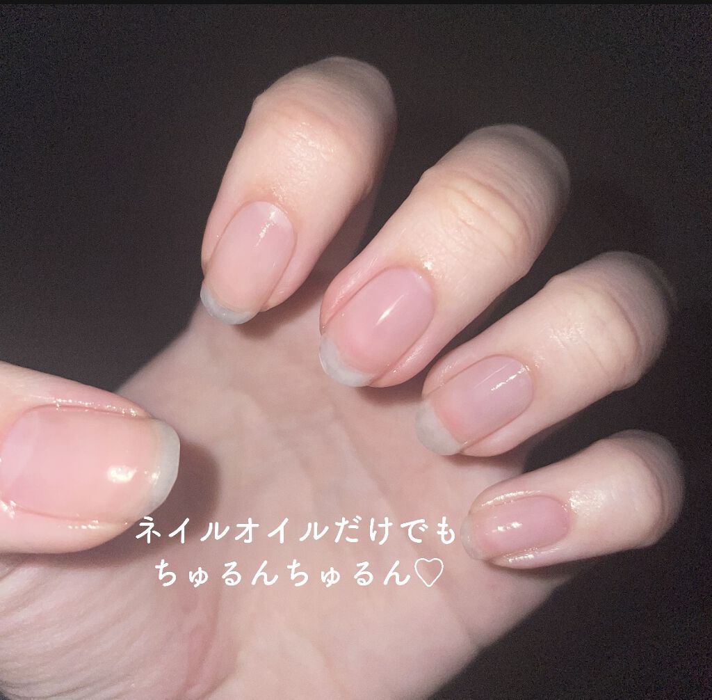 ⭐️表面をネイルバッファーで整える爪表面のぼこぼこをヤスリで整えて艶出ししてあげるだけでトップコートを塗ったような艶に!学生さんでネイル禁止の方などにおすすめ♡ ⭐️甘皮のケアをする爪の根元にある不要な甘皮を処理することで、爪の長さが長く見えます♡ ⭐️ネイルオイルをこまめに塗る私みたいに爪の表面にダメージがある人には絶対にやってほしいところ!ネイルオイルをこまめに塗り、爪周りの乾燥を防ぐと綺麗な爪が育ちます!それが未来の美爪に繋がります✨ ⭐️ネイルファンデや補強剤を塗るケアは長期的なモノなので、今すぐ綺麗になれる!というわけではありません😭でもデートや人と会うなど爪を綺麗に見せたい時ありますよね?そういったときにはベースコートで爪を補強し割れにくくして、かつネイルファンデで見た目を綺麗にしています♡