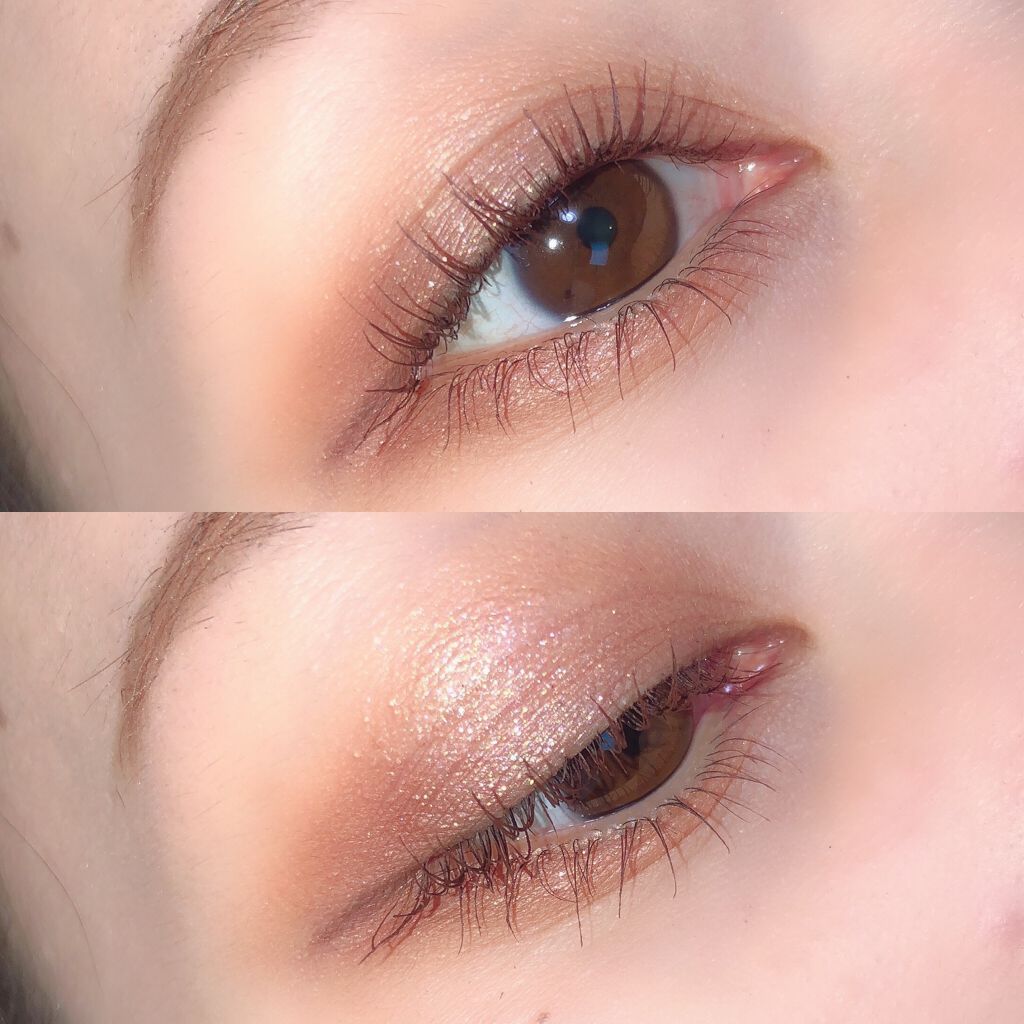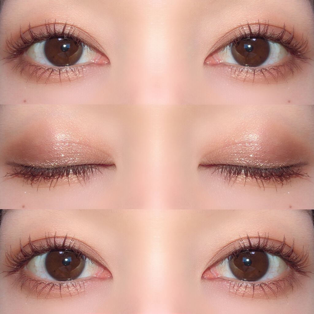 よくパレットのなかで明るいカラーをベースにまぶたに広く塗ることが多いのですが、パール感のあるカラーを避ける🙆♀️! パール感たっぷりの明るいカラーは涙袋に使うぐらい光を集めてぷっくり見せてくれるので、まぶたに広く使うと腫れぼったく見えがち😓 目元を明るくみせてくれたり、次に使うアイシャドウをぼかしやすくしてくれるけど、すっ飛ばしてメインのカラーを塗っちゃう✊🏻❤️🔥 涙袋にはたっぷり塗ってぷっくり見せる🙆♀️💕 シルキースフレアイズのマットタイプはすごく優れているな〜と感じました☺️💗 赤やオレンジなどは、入れすぎると腫れぼったく見えやすいので、見せたいカラーは下まぶた目尻にのせて色をたのしむ♡♡ パール感なしの透けマットだけじゃ物足りない… そう感じさせない華やかなラメが左上に入っているので黒目上と涙袋にのせるとすごく可愛い仕上がりに😍! 厄介な左右差のお陰でマットアイシャドウが好きになりました😌💕