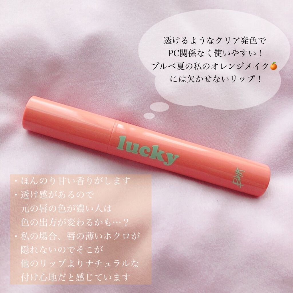 まるで女優さんの唇のような、みんなから愛される好印象な唇になれる、そんなリップです! 絶妙粘膜色です🥺💞 女優さんってそんなに濃いメイクをしているように見えないのにすごく整っていて清潔感があって美しいですよね🤔 リップもさりげない血色感で元から綺麗みたいな… まるでそんな唇になれるリップです🤍 このぷるつや感がたまらない、、、 オフィスメイクにはもちろん、ティッシュOFFしてツヤ感を抑えたらティントしたカラーが元々綺麗な唇って感じになるのでスクールメイクにもおすすめ❣️ 絶対男性も好きそうな色ですよね…これはあざとい…👿💘 純粋な天使にもあざとい小悪魔にもなれそう👿 ラッキーシャインティント、Qoo10だと2本で¥1600くらいなので安いし欠点が特にないので本当にオススメです!!!