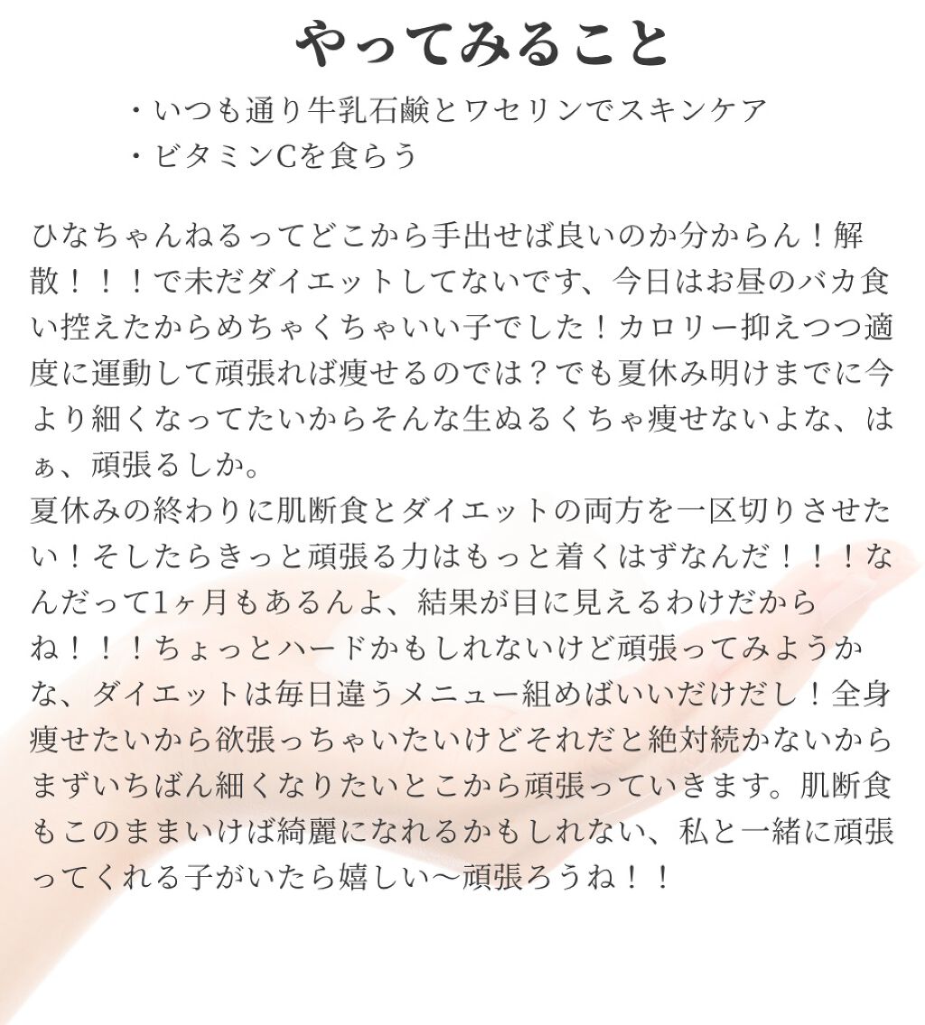 こんばんは、引き続き話すことないですが肌の経過とメモ!どうでもいいけどヨーグルトがちゃんと商品として追加できるのびっくりしちゃったいやあるんか〜〜い!と思って一人で笑ってます虚しい!!無糖が好きです!!蜂蜜が美味しいので!!蜂蜜が好きなので!...