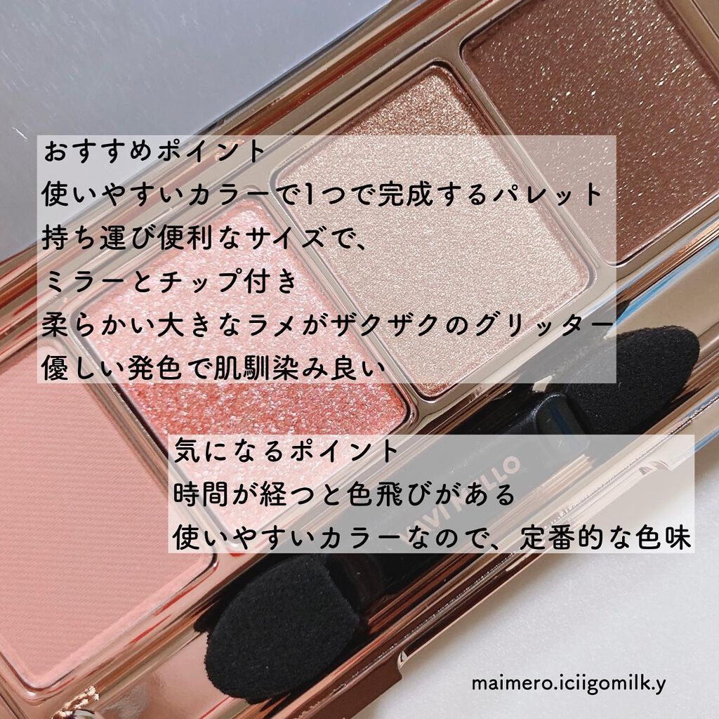 まず、色味がどんぴしゃだいすき💓 どちらをメインに使っても大人かわいいが作れる! あと、ラメも偏向がかかってて角度によって変わる色味がよりうるっと感を出してくれます。 気になるところは、色味が淡いのでぼけやすいかなぁ。あと、色もちもさほどかな。 ただこのお値段で、わたしは大満足です🙌