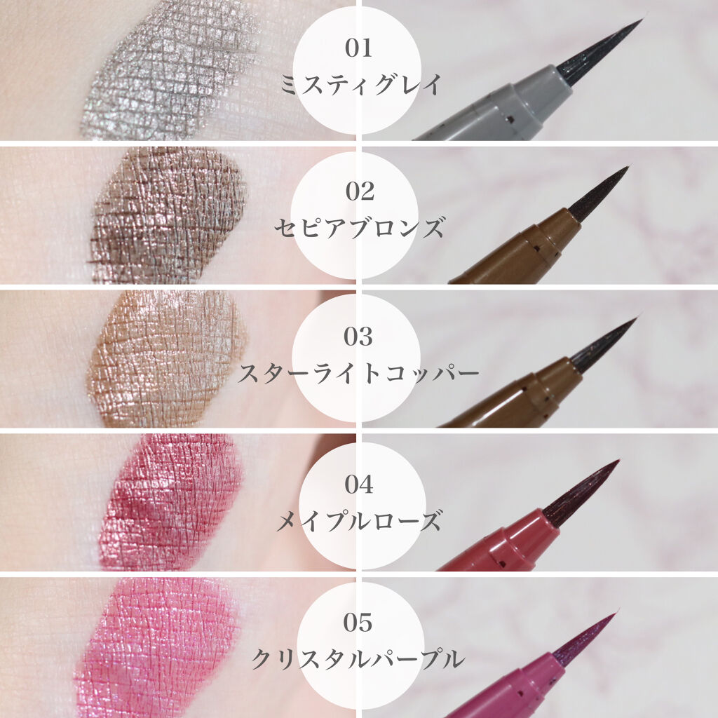 - 〇パールなのに落ちにくい!高密着なので水、汗、涙、こすれに強い。 きれいな仕上がりを持続。 〇発色に合わせた筆先を開発。 柔軟性とコシを兼ね備え、どんなラインでもブレずに描けます。 〇速乾性でよれやにじみによるくずれを防止。 〇染料不使用。 〇優れた耐水性なのにお湯+洗顔料でオフ。 (まれにアイシャドウ等と混ざると落ちにくい場合があります。その際はお使いのクレンジング料で落としてください)