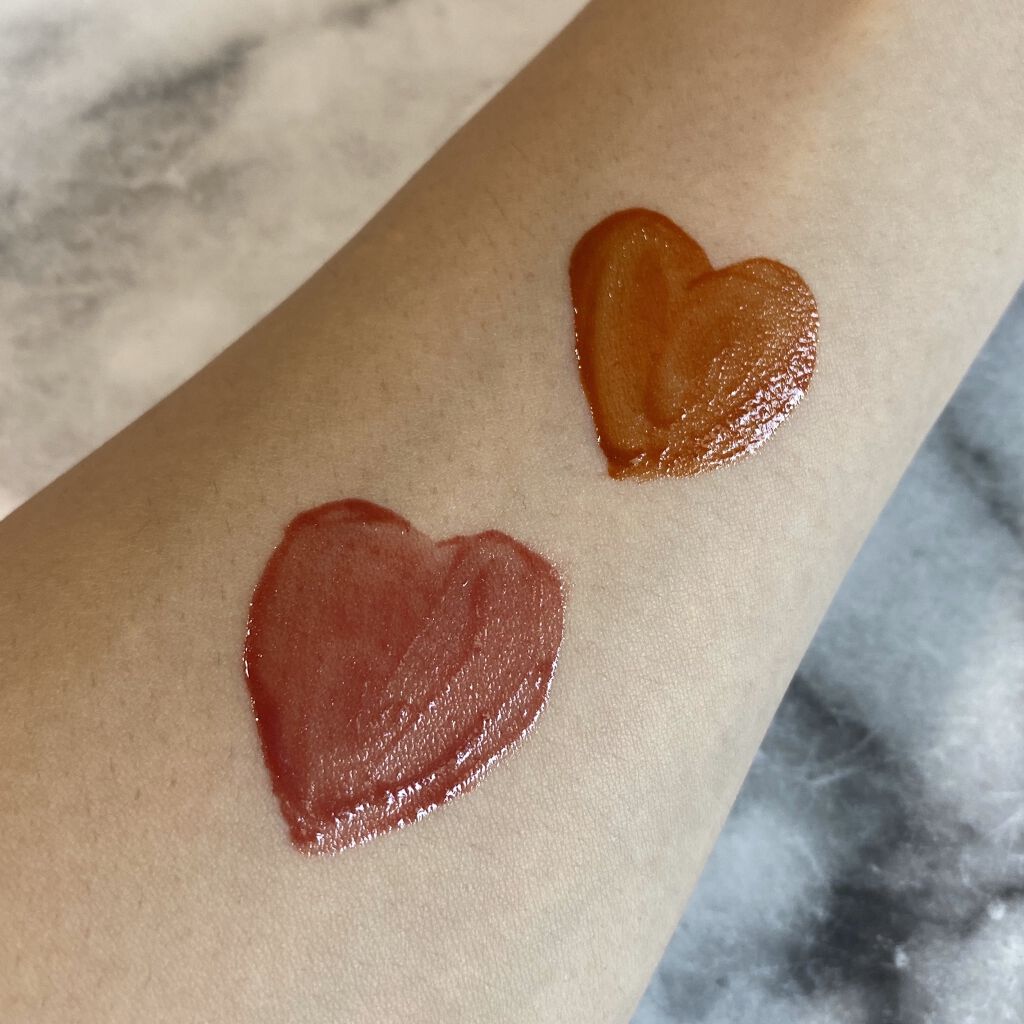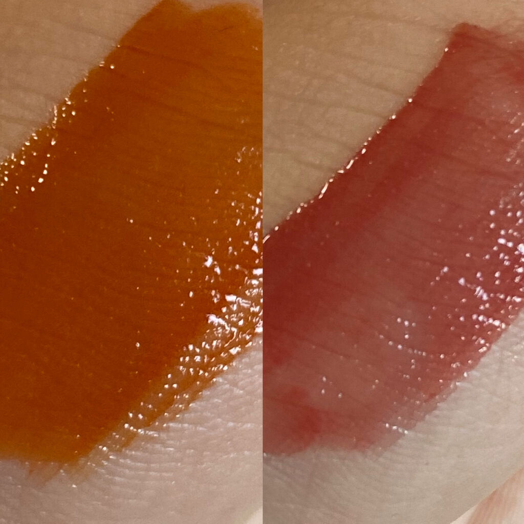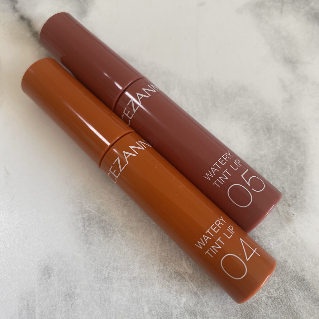 \セザンヌティント全色レビュー✨/#セザンヌ☑︎ウォータリーティントリップ今年の秋に04キャメルオレンジが廃盤になり09ピオニーピンクが新登場したセザンヌのティントリップせっかくなので全色購入してみました。P1コーラルブーケのみラメ入りパール...