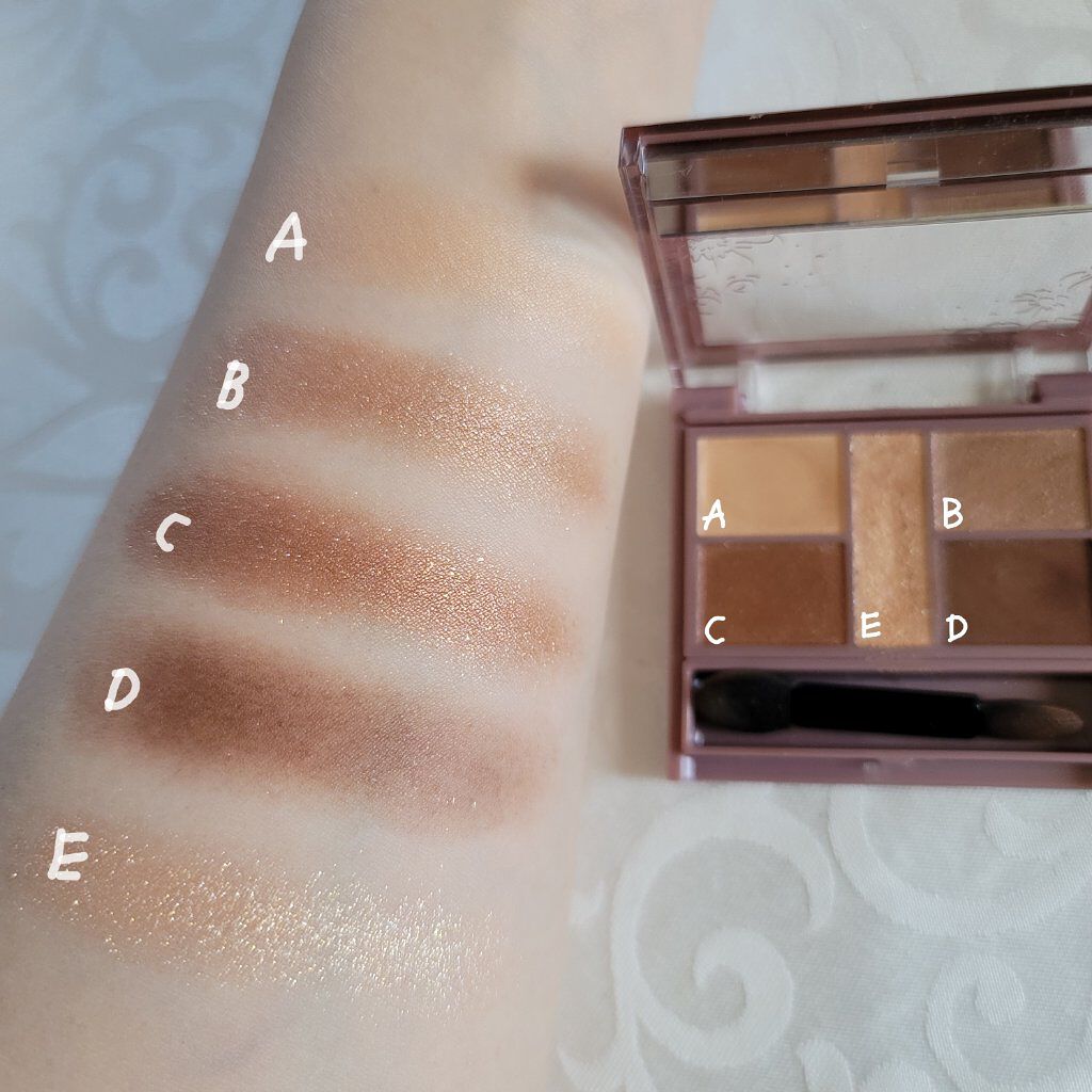 - 1枚のパレットで2つのスタイルが完成! 5色の欲ばりアイシャドウ♥ メインカラーを選んで2つのスタイルが楽しめる! A→B→D でスタイル1 A→C→D でスタイル2 繊細な粉質が、しっとりとまぶたに密着して色落ちを防ぎます。 透明感のあるキラうるトッピングジュエル(繊細ラメ)は、気分によってトッピング!