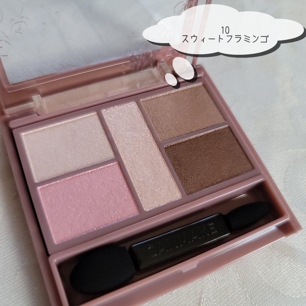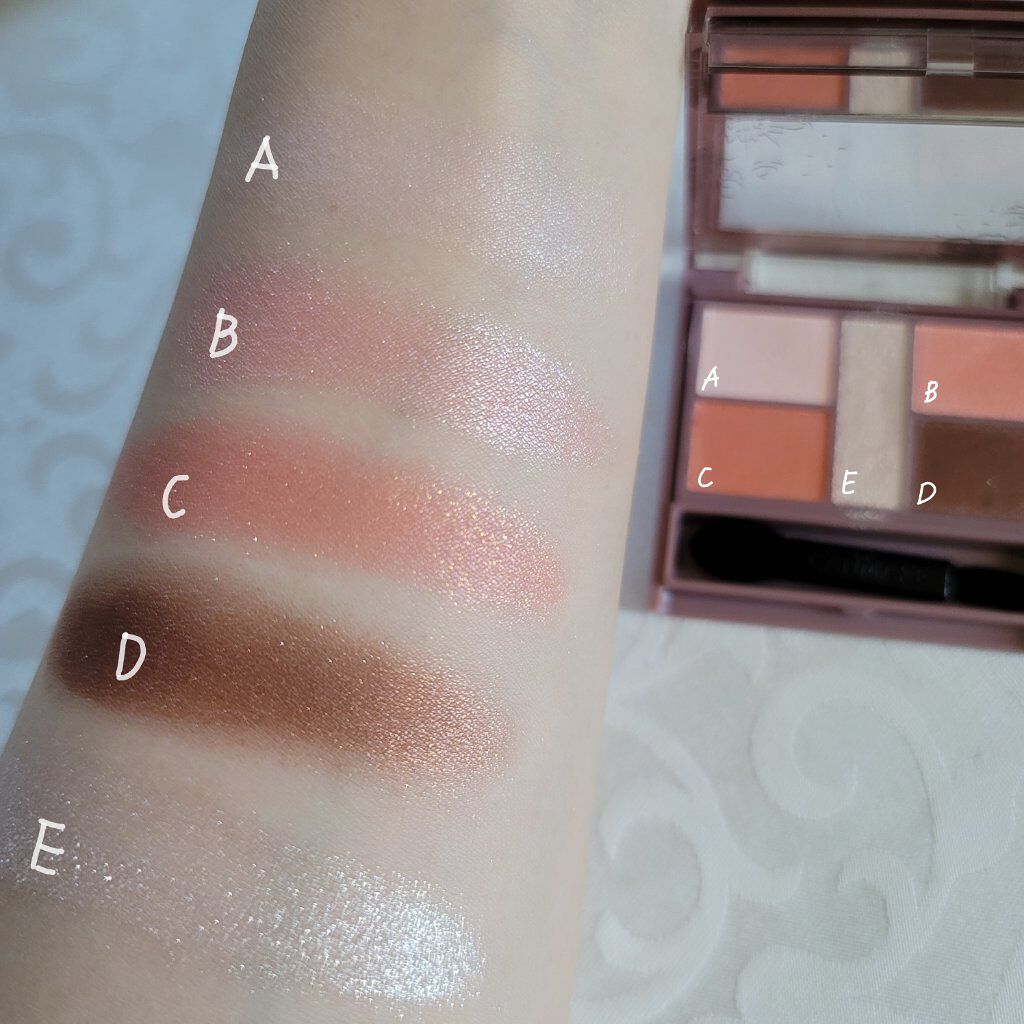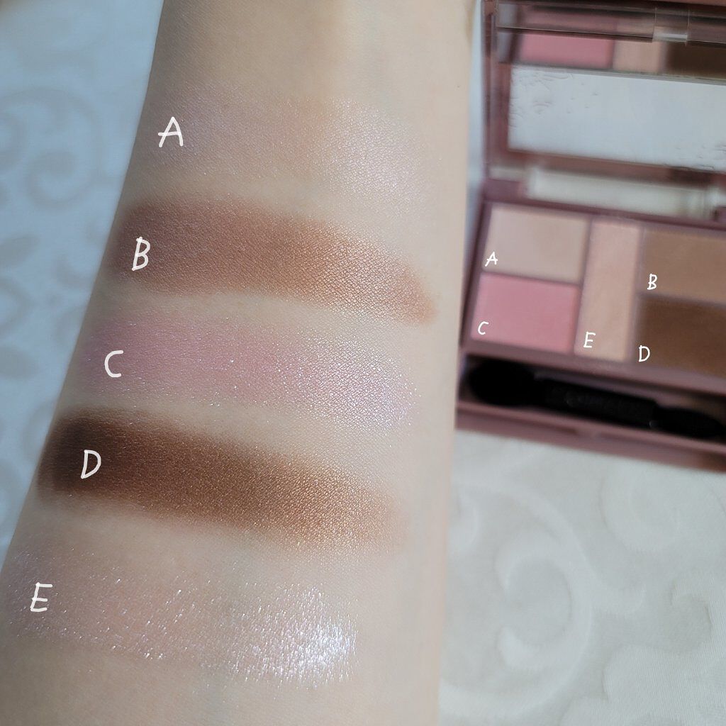 5色がセットされたアイシャドウで、2通りのメイクが楽しめる♪ しっとり質感にパールとラメがふんだんに入っているから艶めくような立体感が出せて可愛い…!! 締め色ブラウンだけマットだから、より引き締まって見えると思ったよ♡