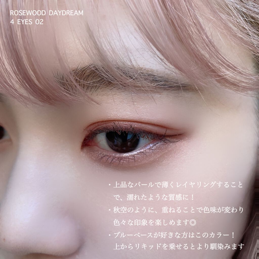 | ふわっとしたテクスチャー。乾きが早く、スッと馴染んでまぶたにしっかり密着してくれる♡しかも高発色! | 詳細を見る | ||