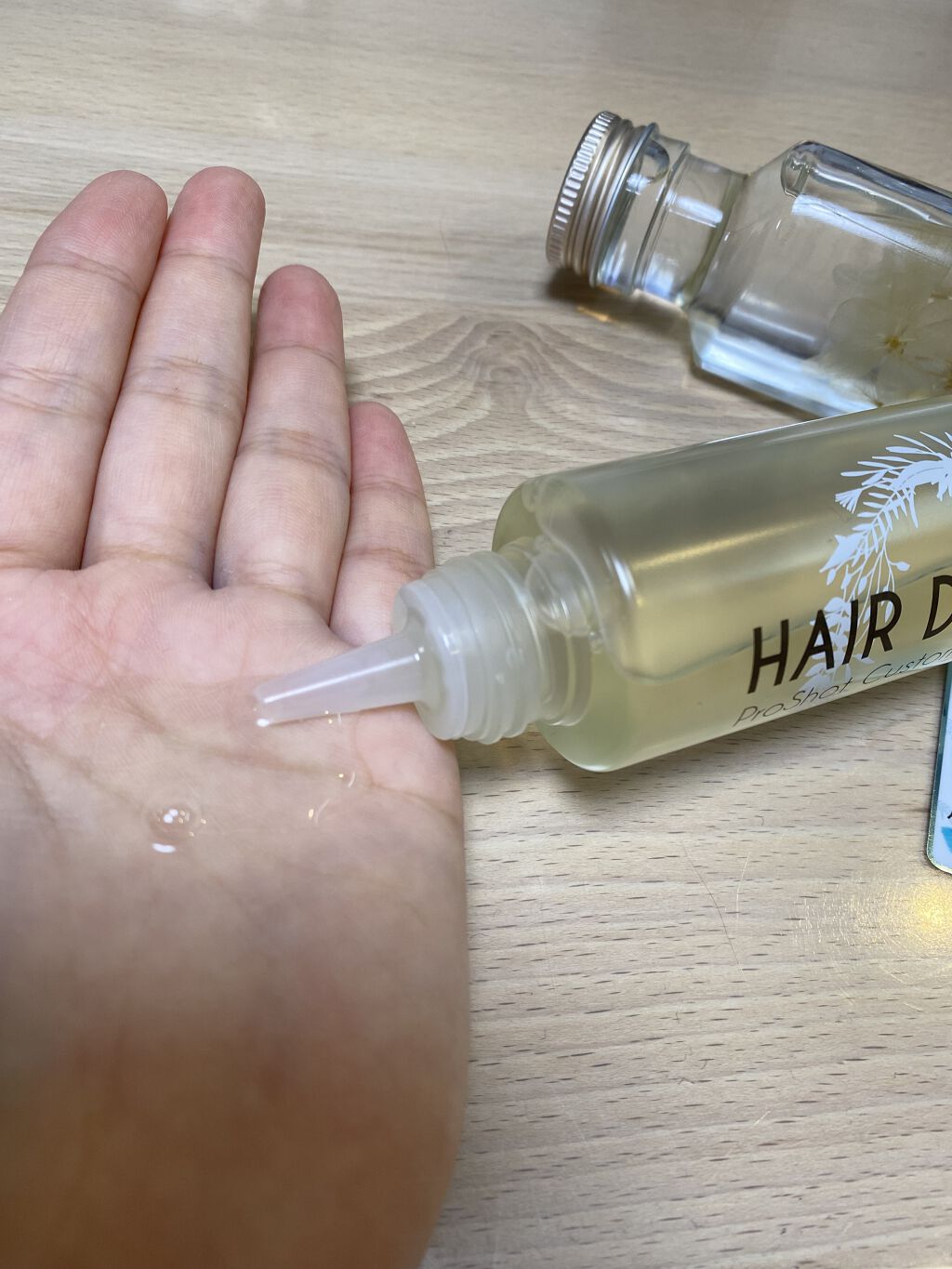 ポンプを押した瞬間にカプセルが弾けてミルクと一体化します。 ベタつかないテクスチャーで、髪につけてもベタベタしません。 このトリートメントを使ってみたら、結構つきにくかったような気がします。 香りも良くておすすめです。