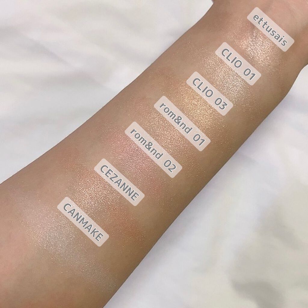 どれもバラエティショップやドラストなど日本にあるお店で購入できるので、オンラインでお買い物できない方や学生さんにもおすすめ💖 最近のお気に入りはettusaisのハイライト🤍✨ 夏だから濡れツヤ感のあるメイクがしたいのと、肌の露出が増えるので、鎖骨や肩、首筋に乗せるとツヤっとして華奢な雰囲気が出てかわいい😭💖 ベタつきが苦手な方も一回テスター見てほしい!本当にツヤツヤで可愛いから!!!!🥺💗