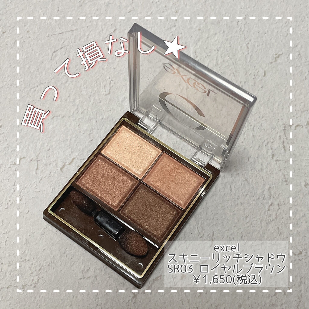 LIPSショッピングで購入致しましたexcelスキニーリッチシャドウSR11ブリックブラウン久しぶりのexcelスキニーリッチシャドウプチプラなのにデパコス並みのクオリティナチュラルなピンクブラウン綺麗なグラデーションが完成しますイエベ向けで...