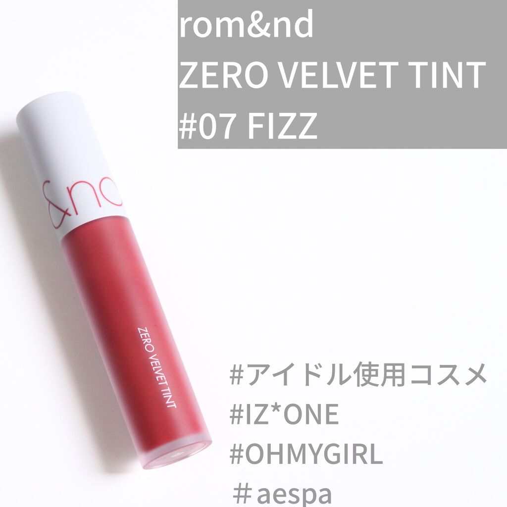 なめらかテクスチャーとベルベット仕上げが特徴的な「ゼロベルベットティント」のミニサイズを使ったよ! クールカラーでオススメの「#07 FIZZ」は華やかな紅色をぎゅっと詰め込んだようなカラー。 唇に乗せるとくすみや縦じわをカバーして、スルン!となめらかな表面に。