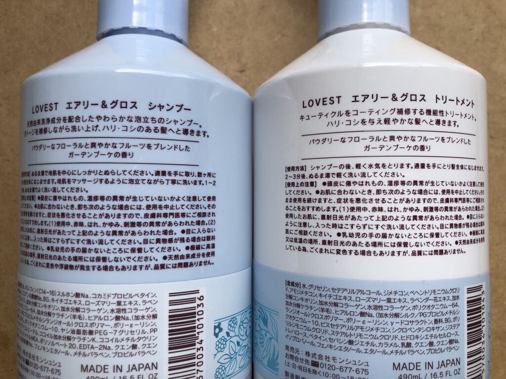 商品詳細情報LOVEST by air Salon Quality Hair Care エアリーアンドグロス シャンプー/トリートメント