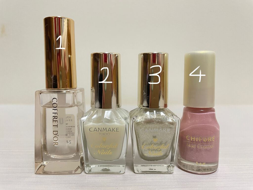落ち着いた色味のネイルなので今の時期にぴったりだと思います。 キャンメイクカラフルネイルズ N17クリームチャイ N29ミルクシロップ ちふれネイル エナメル 003シルバー系ラメ