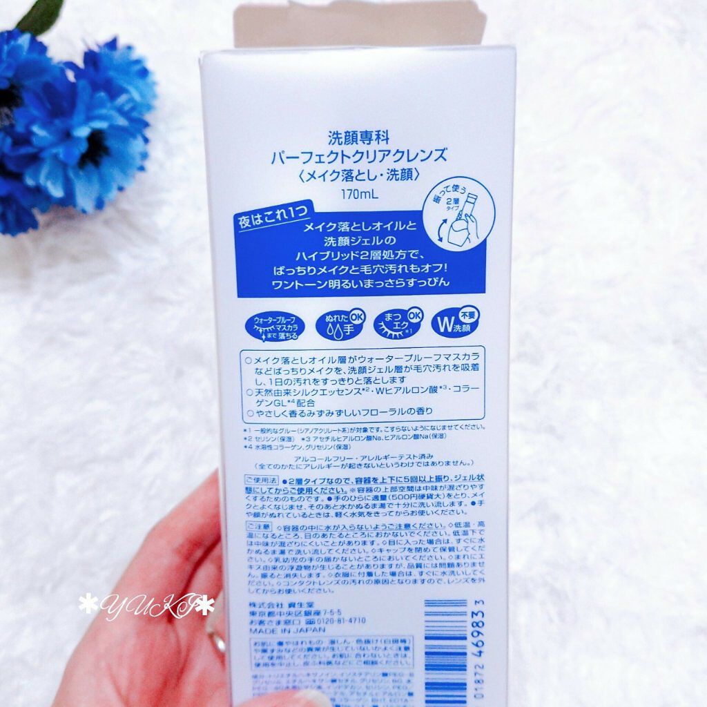 - メイク落としオイルと洗顔ジェルのハイブリッド2層処方で”オイル並みの洗浄力”と”洗顔並みのさっぱり感”を叶え、ワントーン明るいまっさらすっぴん。 ○メイク落としオイル層がウォータープルーフマスカラなどばっちりメイクを、洗顔ジェル層が毛穴の皮脂汚れを吸着し、1日の汚れをすっきりと落とします。 ○天然由来シルクエッセンス*2・Wヒアルロン酸*3・コラーゲンGL*4配合 ○やさしく香るみずみずしいフローラルの香り ○アルコールフリー・アレルギーテスト済み*5 *2 セリシン(保湿) *3 アセチルヒアルロン酸 Na、ヒアルロン酸 Na(保湿) *4 水溶性コラーゲン、グリセリン(保湿) *5 全てのかたにアレルギーが起きないというわけではありません。