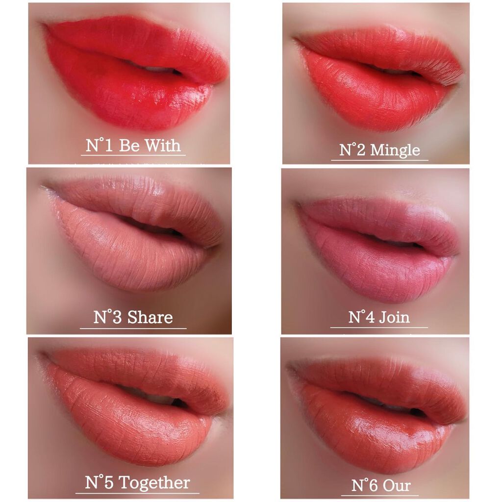 - <No.1 ビーウイズ> ジメチコン、(ジメチコン/ビニルジメチコン)クロスポリマー、トリイソステアリン酸ポリグリセリル-2、ジメチコンクロスポリマー、メチルトリメチコン、トリメチルシロキシケイ酸、(ビニルジメチコン/メチコンシルセスキオキサン) クロスポリマー、セチルPEG/PPG-10/1ジメチコン、イソドデカン、1,2‐ヘキサンジオール、黄色5号、酸化チタン、黄色4号、赤色202号、酢酸トコフェロール、ジステアルジモニウムヘクトライト、香料、フロキシンB、炭酸プロピレン、リナロール、テトラ(ジ-t-ブチルヒドロキシヒ ドロケイヒ酸)、黒色酸化鉄、黄色酸化鉄、青色1号、トリエトキシカプリリルシラン <No.2 ミングル> ジメチコン、(ジメチコン/ビニルジメチコン)クロスポリマー、ジメチコンクロスポリマー、メチルトリメチコン、トリメチルシロキシケイ酸、トリイソステアリン酸ポリグリセリル-2、酸化チタン、(ビニルジメチコン/メチコンシルセスキオキサン) クロスポリマー、セチルPEG/PPG-10/1ジメチコン、イソドデカン、1,2‐ヘキサンジオール、酢酸トコフェロール、黄色5号、ジステアルジモニウムヘクトライト、赤色202号、香料、黒色酸化鉄、炭酸プロピレン、リナロール、テトラ(ジ-t-ブチルヒドロキシヒドロケイヒ酸)、赤色酸化鉄、黄色酸化鉄、黄色4号、青色1号、トリエトキシカプリリルシラン <No.3 シェア> ジメチコン、(ジメチコン/ビニルジメチコン)クロスポリマー、ジメチコンクロスポリマー、メチルトリメチコン、トリメチルシロキシケイ酸、(ビニルジメチコン/メチコンシルセスキオキサン) クロスポリマー、セチルPEG/PPG-10/1ジメチコン、イソドデカン、酸化チタン、1,2‐ヘキサンジオール、黄色4号、酢酸トコフェロール、ジステアルジモニウムヘクトライト、赤色202号、香料、炭酸プロピレン、黄色5号、リナロール、テトラ(ジ-t-ブチルヒドロキシヒドロケイヒ酸)、赤色酸化鉄、黄色酸化鉄、青色1号、トリエトキシカプリリルシラン <No.4 ジョイン> ジメチコン、(ジメチコン/ビニルジメチコン)クロスポリマー、ジメチコンクロスポリマー、メチルトリメチコン、トリメチルシロキシケイ酸、(ビニルジメチコン/メチコンシルセスキオキサン) クロスポリマー、セチルPEG/PPG-10/1ジメチコン、イソドデカン、酸化チタン、1,2‐ヘキサンジオール、黄色5号、赤色202号、酢酸トコフェロール、ジステアルジモニウムヘクトライト、青色1号、香料、炭酸プロピレン、リナロール、テトラ(ジ-t-ブチルヒドロキシヒドロケイヒ酸)、黒色酸化鉄、赤色酸化鉄、黄色酸化鉄、黄色4号、トリエトキシカプリリルシラン <No.5 トゥギャザー> ジメチコン、(ジメチコン/ビニルジメチコン)クロスポリマー、ジメチコンクロスポリマー、メチルトリメチコン、トリメチルシロキシケイ酸、(ビニルジメチコン/メチコンシルセスキオキサン) クロスポリマー、セチルPEG/PPG-10/1ジメチコン、イソドデカン、酸化チタン、1,2‐ヘキサンジオール、黄色5号、黄色4号、酢酸トコフェロール、ジステアルジモニウムヘクトライト、赤色202号、黒色酸化鉄、香料、炭酸プロピレン、リナロール、テトラ(ジ-t-ブチルヒドロキシヒドロケイヒ酸)、赤色酸化鉄、黄色酸化鉄、青色1号、トリエトキシカプリリルシラン <No.6 アワー> ジメチコン、(ジメチコン/ビニルジメチコン)クロスポリマー、ジメチコンクロスポリマー、メチルトリメチコン、トリメチルシロキシケイ酸、トリイソステアリン酸ポリグリセリル-2、(ビニルジメチコン/メチコンシルセスキオキサン) クロスポリマー、セチルPEG/PPG-10/1ジメチコン、イソドデカン、酸化チタン、1,2‐ヘキサンジオール、赤色酸化鉄、酢酸トコフェロール、黒色酸化鉄、黄色4号、ジステアルジモニウムヘクトライト、赤色202号、香料、炭酸プロピレン、リナロール、テトラ(ジ-t-ブチルヒドロキシヒドロケイヒ酸)、黄色酸化鉄、フロキシンB、黄色5号、青色1号、トリエトキシカプリリルシラン