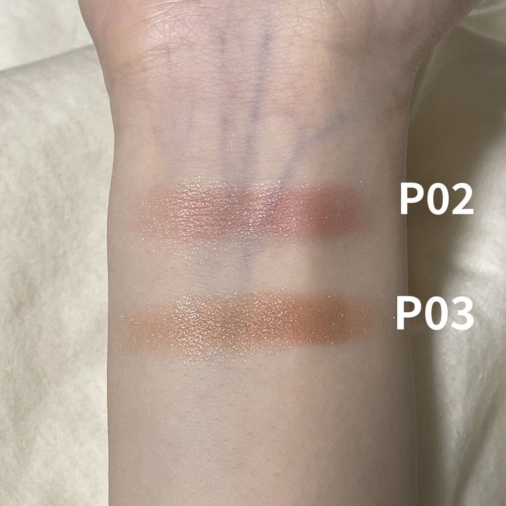 - <P01 ピーチダズル> トリエチルヘキサノイン、ジメチコン、シリカ、(ジメチコン/ビニルジメチコン)クロスポリマー、合成フルオロフロゴパイト、スクワラン、オリーブ果実油、ホホバ種子油、カニナバラ果実油、マイクロクリスタリンワックス、パラフィン、フェノキシエタノール、トコフェロール、ジパルミチン酸アスコルビル、リンゴ酸ジイソステアリル、タルク、マイカ、酸化チタン、酸化鉄、赤226、赤202、水酸化Al、酸化スズ <P05 ペールライラック> トリエチルヘキサノイン、ジメチコン、合成フルオロフロゴパイト、シリカ、(ジメチコン/ビニルジメチコン)クロスポリマー、スクワラン、オリーブ果実油、ホホバ種子油、カニナバラ果実油、マイクロクリスタリンワックス、パラフィン、フェノキシエタノール、トコフェロール、ジパルミチン酸アスコルビル、リンゴ酸ジイソステアリル、マイカ、酸化チタン、酸化鉄、赤226、赤202、コンジョウ、水酸化Al、酸化スズ <P02 ローズペタル> トリエチルヘキサノイン、ジメチコン、シリカ、(ジメチコン/ビニルジメチコン)クロスポリマー、合成フルオロフロゴパイト、スクワラン、オリーブ果実油、ホホバ種子油、カニナバラ果実油、マイクロクリスタリンワックス、パラフィン、フェノキシエタノール、トコフェロール、ジパルミチン酸アスコルビル、リンゴ酸ジイソステアリル、タルク、マイカ、酸化チタン、酸化鉄、赤202、赤226、コンジョウ、水酸化Al、酸化スズ