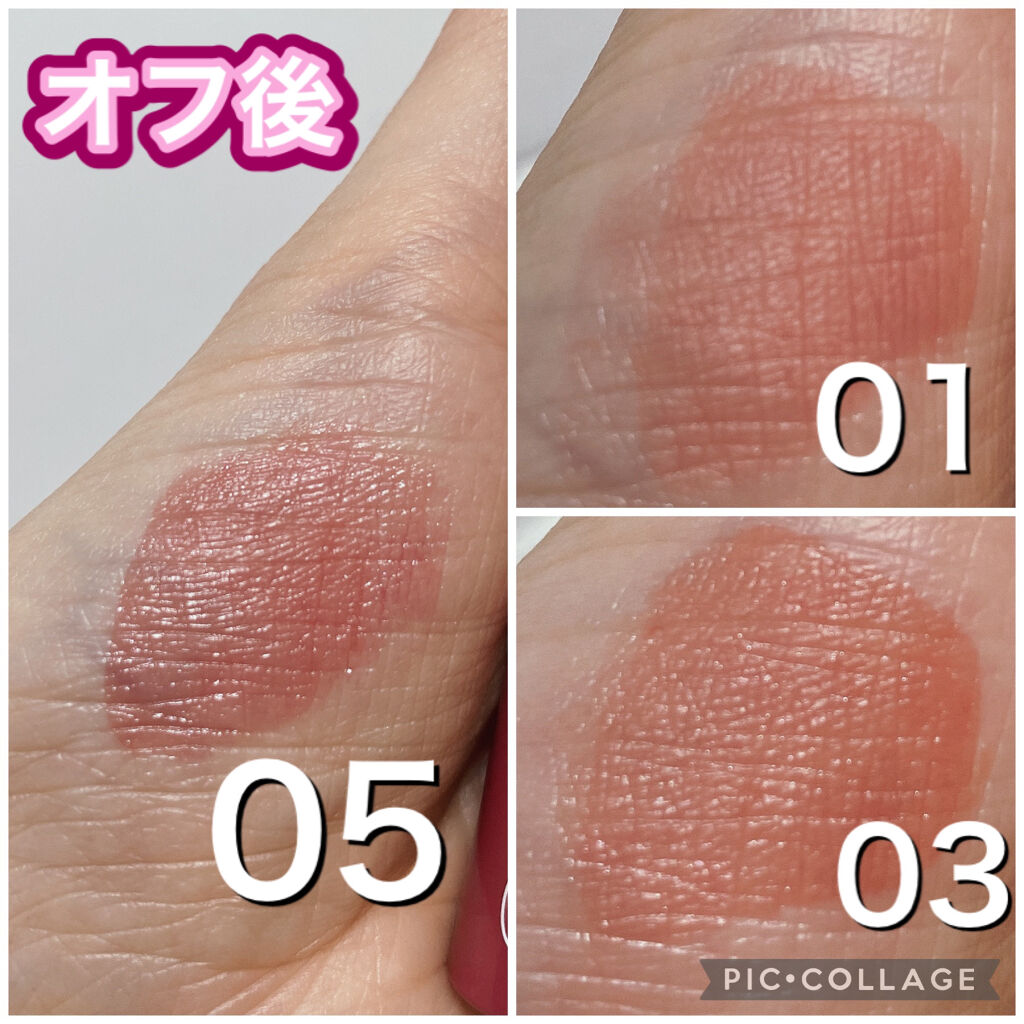 新色がすごく可愛いカラー😍 黄みのピンクベージュだった😂 赤みを抑えた深みブラウン。 色もちがすごい!と評価が高いけど 私は乾燥を感じましたが私はかなりの乾燥肌で唇も結構乾燥するからかも カラバリ豊富でオシャレカラー多い 色変わりがしないのはピカイチ 私の唇には合わなかった🥲 ブルベさん向きのカラーは少なめ