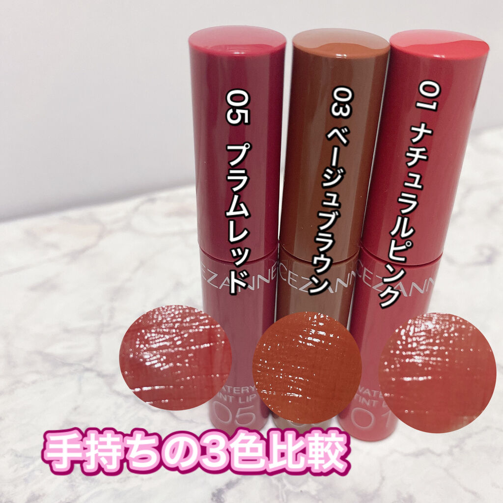 \セザンヌティント全色レビュー✨/#セザンヌ☑︎ウォータリーティントリップ今年の秋に04キャメルオレンジが廃盤になり09ピオニーピンクが新登場したセザンヌのティントリップせっかくなので全色購入してみました。P1コーラルブーケのみラメ入りパール...