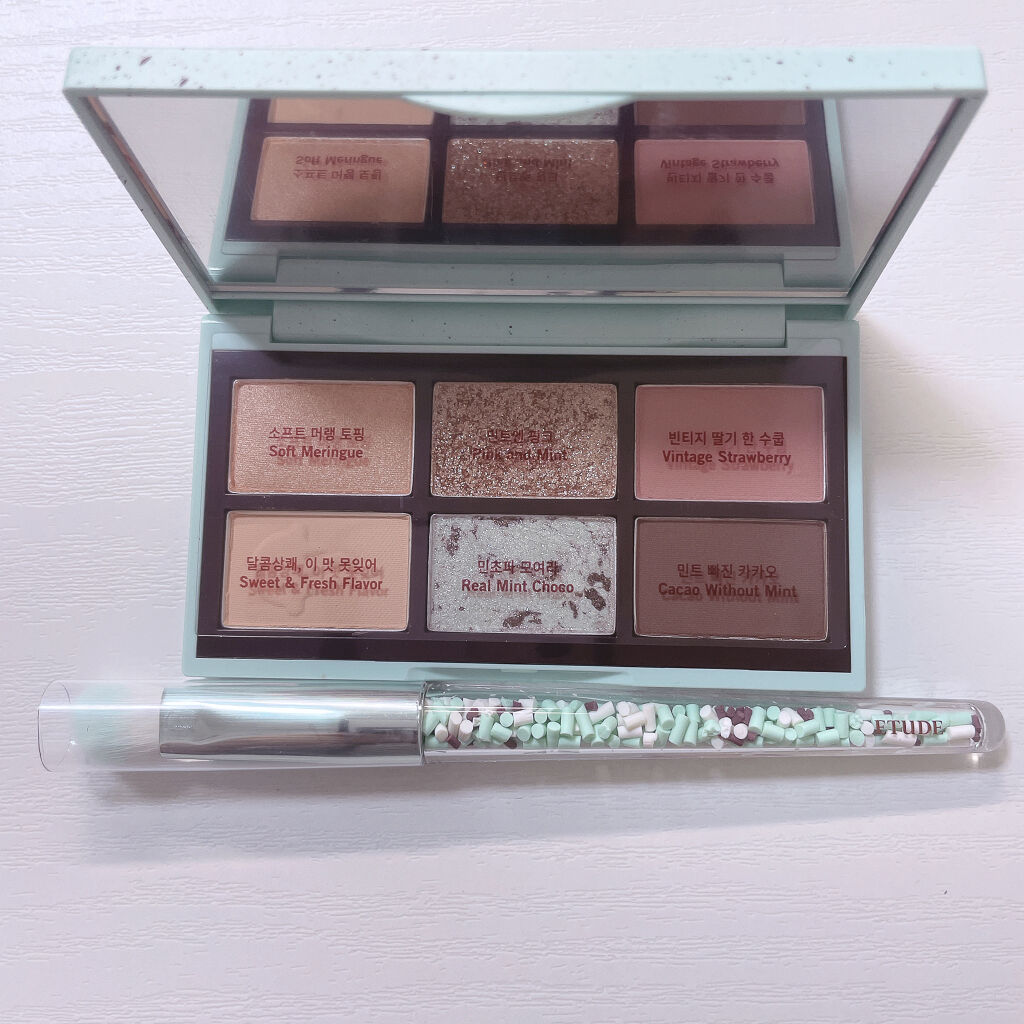 ETUDEプレイカラーアイズミニミントチョコ🌱YouTuberサラさんのショート動画で知って一目惚れして気づいたらQoo10で購入してました💸発色もそこまで濃くなく、調整しやすいので本当に見た目のわりに捨て色なく使えてます‼︎①シルクのような...