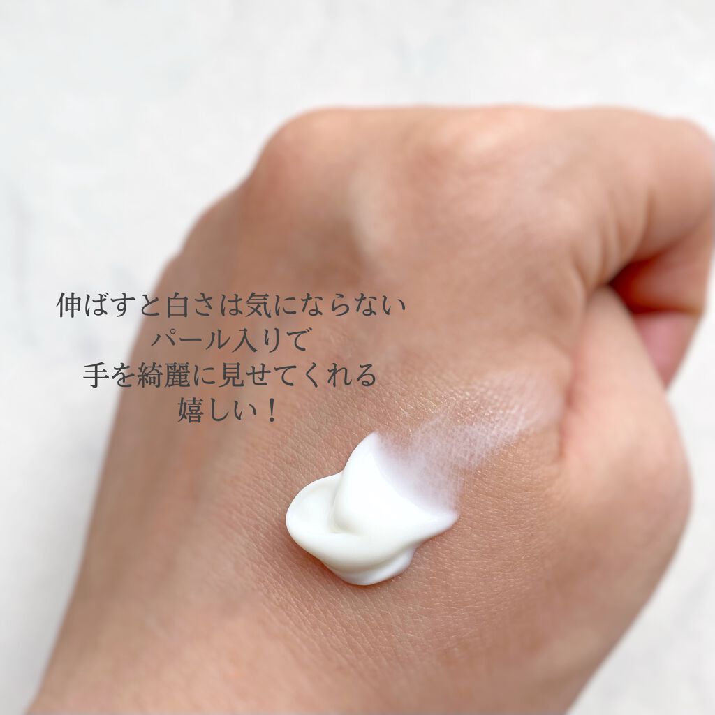 | 肌にのせると体温でとろけていくようなクリーム。しっかり保湿されもっちりとした手に | 詳細を見る | ||