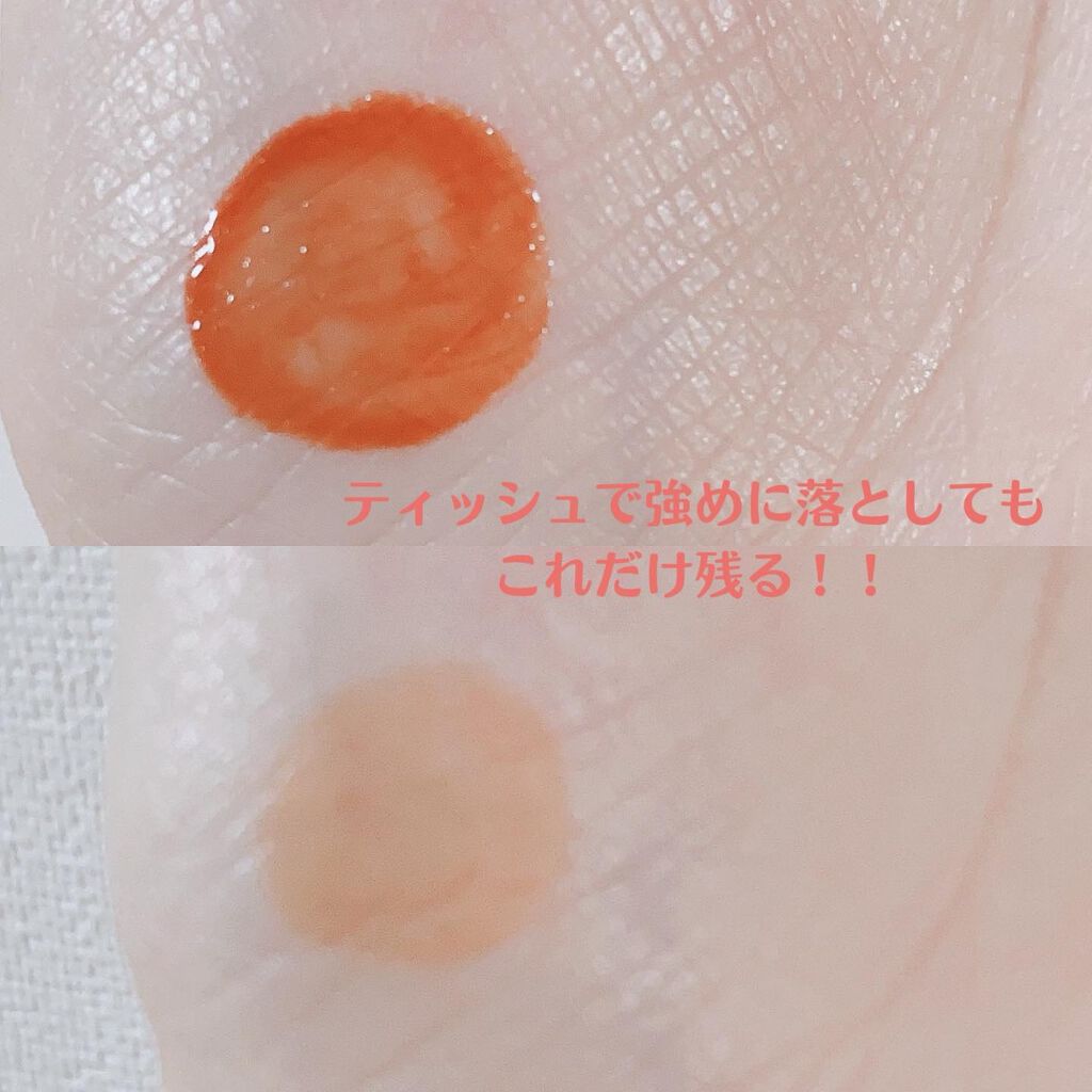 塗って5分でカラー層の上にジェル膜が出来る新処方! ツヤツヤな状態でリップが保てます♡ ティッシュオフ1回でも、充分ツヤは残るので、お好みで使うのが良さそう。 唇のコンディションが悪いと少しムラになるカラーもあるので、その場合はきちんとリップクリームを塗ってからの方が良いかな?