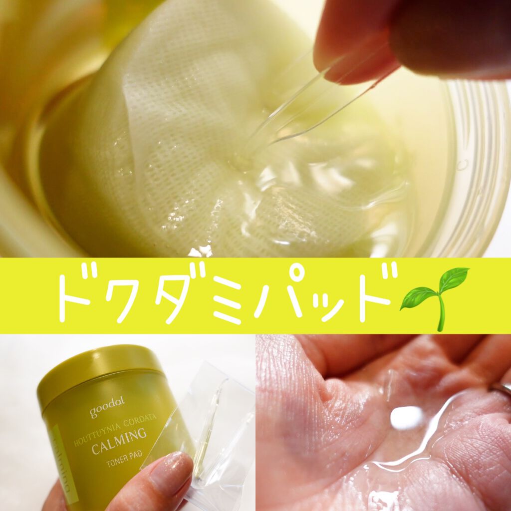 ⭐️⭐️⭐️⭐️☆さっぱりトナパ💚goodalドクダミカーミングトナーパッド薄めのメッシュパッドサイズは小さめうっすらドクダミの香り液ヒタヒタを通り越してビタビタ容器倒すと液漏れします使用感はさっぱりめでわりと好み💕使いやすいですお風呂上がり...