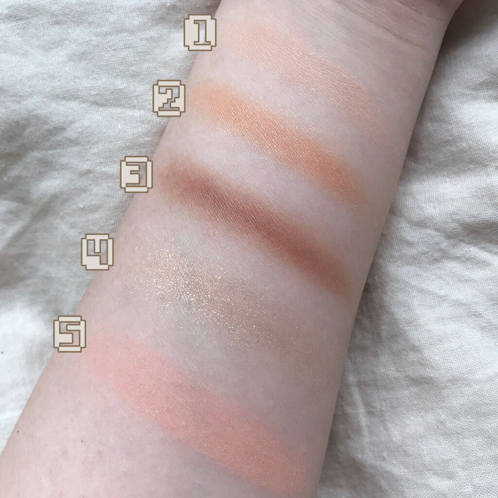 - <001 スウィートピンク> タルク、マイカ、グンジョウ、トリ(カプリル酸/カプリン酸)グリセリル、シリカ、窒化ホウ素、ステアロイルオキシステアリン酸オクチルドデシル、メチルプロパンジオール、ミリスチン酸Mg、マンガンバイオレット、ジメチコン、ミネラルオイル、プロパンジオール、赤酸化鉄、ヒドロキシプロピルビスパルミタミドMEA、ステアリン酸ジメチコノール、黄酸化鉄、ステアリン酸Mg、黒酸化鉄、トリエトキシカプリリルシラン、酸化チタン、メチコン、水 <002 ハローピーチ> マイカ、タルク、ホウケイ酸(Ca/Al)、酸化チタン、シリカ、ジエチルヘキサン酸ネオペンチルグリコール、フェニルトリメチコン、赤酸化鉄、グンジョウ、リンゴ酸ジイソステアリル、ヘキサ(ヒドロキシステアリン酸/ステアリン酸/ロジン酸)ジペンタエリスリチル、ネオペンタン酸イソステアリル、ステアロイルオキシステアリン酸オクチルドデシル、ミリスチン酸Mg、マンガンバイオレット、メチルプロパンジオール、ジメチコン、マカデミア種子油、ポリブテン、ステアリン酸Mg、プロパンジオール、トリエトキシカプリリルシラン、酸化スズ、メチコン、水 <003 ベイクド ジンジャー> タルク、マイカ、グンジョウ、シリカ、マンガンバイオレット、酸化チタン、トリ(カプリル酸/カプリン酸)グリセリル、赤酸化鉄、窒化ホウ素、黄酸化鉄、黒酸化鉄、ミリスチン酸Mg、ミネラルオイル、ステアロイルオキシステアリン酸オクチルドデシル、メチルプロパンジオール、ジメチコン、プロパンジオール、黄色4号、ヒドロキシプロピルビスパルミタミドMEA、ステアリン酸ジメチコノール、ステアリン酸Mg、トリエトキシカプリリルシラン、水 <004 グラムローズ> ホウケイ酸(Ca/Al)、タルク、ホウケイ酸(Ca/チタン)、マイカ、ジエチルヘキサン酸ネオペンチルグリコール、酸化チタン、フェニルトリメチコン、シリカ、ミリスチン酸Mg、リンゴ酸ジイソステアリル、ヘキサ(ヒドロキシステアリン酸/ステアリン酸/ロジン酸)ジペンタエリスリチル、ネオペンタン酸イソステアリル、ステアロイルオキシステアリン酸オクチルドデシル、グンジョウ、ステアリン酸Mg、メタクリル酸メチルクロスポリマー、メチルプロパンジオール、ポリブテン、プロパンジオール、酸化スズ、ジメチコン、ラウロイルリシン、マンガンバイオレット、赤酸化鉄、トリエトキシカプリリルシラン、黄酸化鉄、メチコン、水