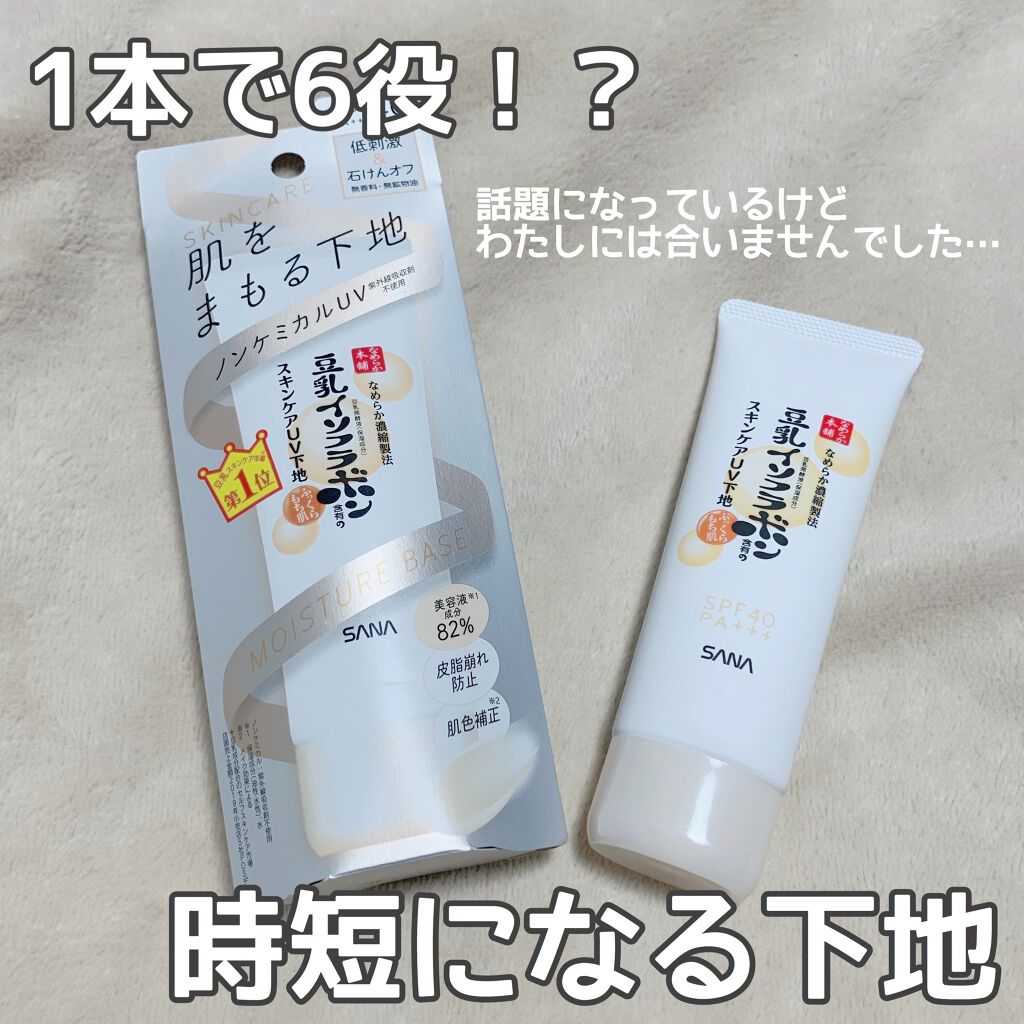 - <スキンケアUV下地> 豆乳のスキンケアUV下地。低刺激&ノンケミカル(紫外線吸収剤不使用)。肌色補正(メイク効果による)&皮脂崩れ防止。化粧水・美容液・乳液・クリーム・UVカット・化粧下地の1本6役。SPF40・PA+++。