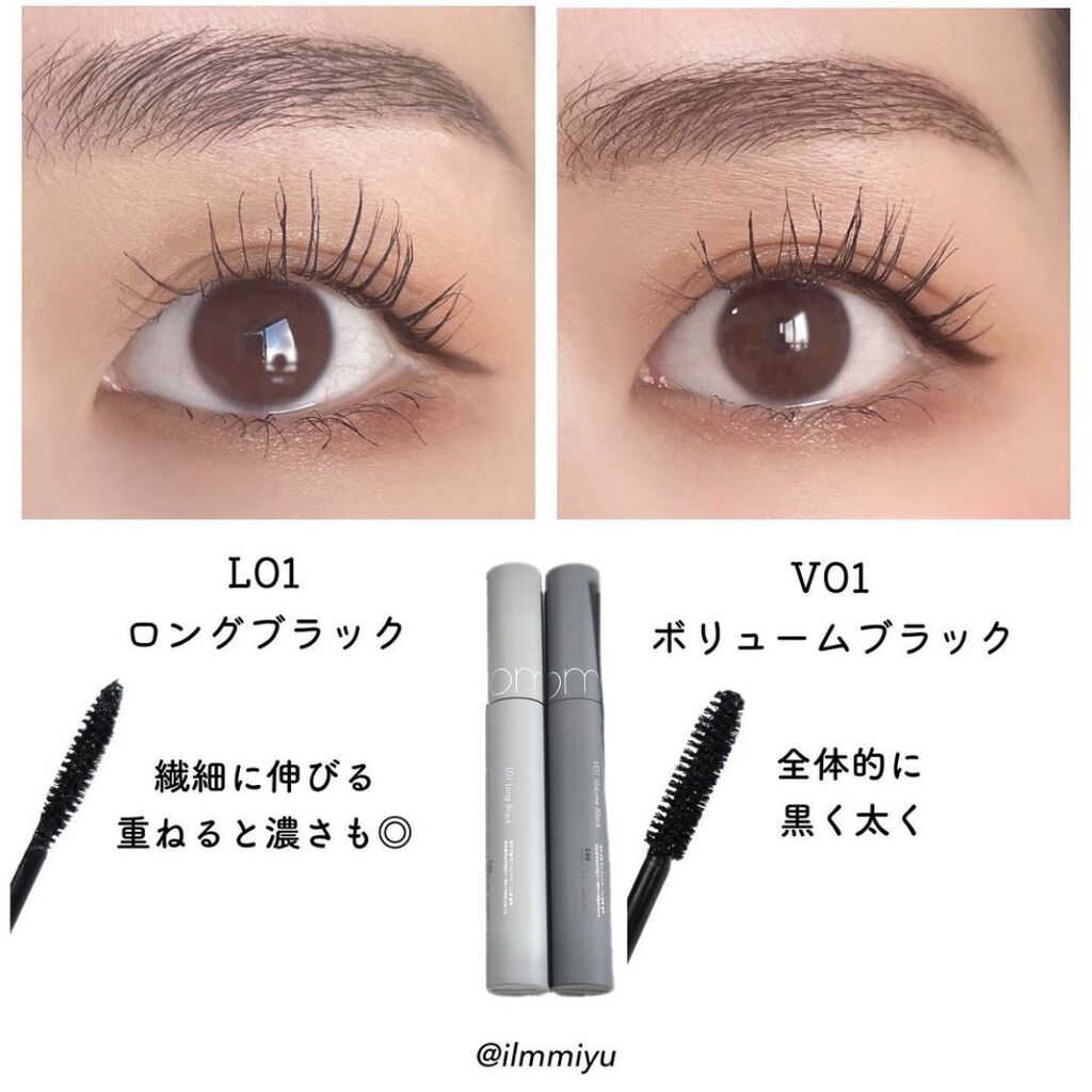 - ◆日本上陸前からすでに大人気 ロムアンドのマスカラがついに店舗販売スタート 1本1本のまつ毛をしっかりキャッチして 、 魅力的な目元を演出するムードマスカラ 。 セパレートされた綺麗な形と上向きカールを長時間キープします。 汗や皮脂に強く 、パンダ目を防ぐウォータープルーフタイプ 。 ◆おすすめポイント◆ ロングタイプは自まつ毛が 伸びたような自然で美しい仕上がりになります。 ボリュームタイプはブラックの1色展開で、まつ毛1本1本に存在感を出し、はっきりとした目元に仕上がります。 ・L01 LONG BLACK‥深みのあるブラックカラー ・L02 LONG ASH‥抜け感のあるアッシュブラウンカラー ・L03 LONG HAZEL‥初心者も使いやすいナチュラルブラウンカラー ・L04 LONG PLUM‥ほんのりとしたプラムブラウンカラー ・L05 LONG VINE‥ブドウのようなディープパープルカラー ・V01 VOLUME BLACK‥美しくボリューム感のあるまつ毛に仕上げるブラック