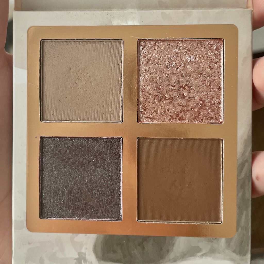 可愛い4色アイシャドウ✨ 落として②がひび割れました😂 見た目が③は黒にラメのシャドウかと思っていたのですが 塗って肌にのせると赤っぽい、ピンク紫?っぽい感じの色でした❣️ ポイントで涙袋キラキラするので涙袋に使用しても可愛い感じでした💕