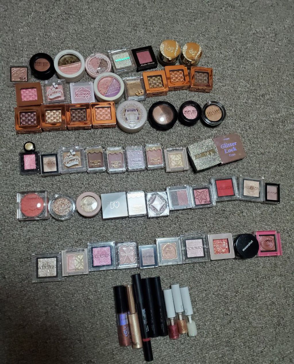 限定で発売直後は買えずに予約してました。 4色混ぜて使ったりできます。前よりもなんとなく良い感じがします。 結構カバー力が高いです。 そのため軽めに付けています。 乾燥もしずらいので乾燥肌でもおすすめです。 こちらは前の投稿で詳しく話しています。 とっても良い感じです。 ハイライトとして使っています。 単独で使うよりチークに重ねるように使うとめちゃくちゃ綺麗です。 くまがめちゃくちゃ酷いので買ってみました。 手で直接取るより筆で取らないと崩れてしまうそうです。 くまが綺麗に隠れてくれて最高です。 01よりさらに締め色が濃くなってます。 そのためかなり使いやすくなりました。 どれも使いやすい色です。 ブラウンではなくラメ感のあるゴールドです。 ラメラメにならないので、意外と普段使いできます。