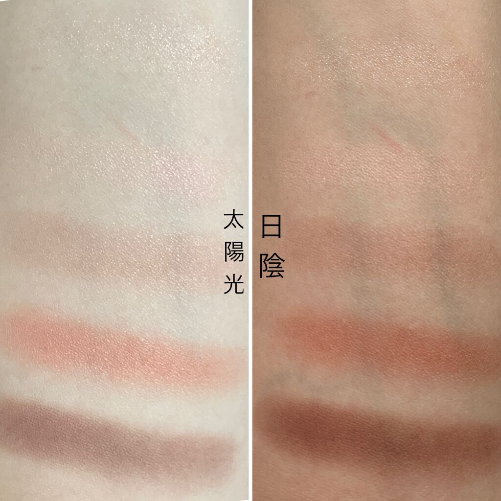 左のベージュカラーは、Cゾーン、鼻筋、顎先、眉下など。ハイライトとしての存在感はあるんだけど、ギラギラはしてなくて品のあるパール系の輝き✨ 右のアプリコットカラーは、頬、まぶた、涙袋など。アイシャドウとチークとして同じ色を使うと統一感がでて垢抜け雰囲気に💕 これで660円は、すごいよ。お値段以上すぎるクオリティに感謝😭👏👏