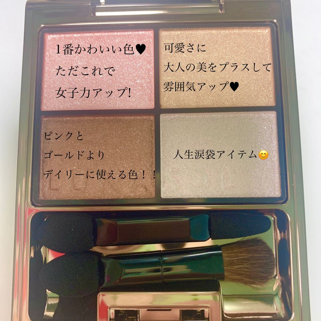 - 彩りにあふれた4色セットのアイシャドウ。透明度、輝度の高いパールをふんだんに配合した新処方「シアーハイライト」できらめく目もとを演出します。しっとりとした柔らかなパウダーを重ねることで、透明感が増し、濡れたようなツヤと繊細な光を放ちます。