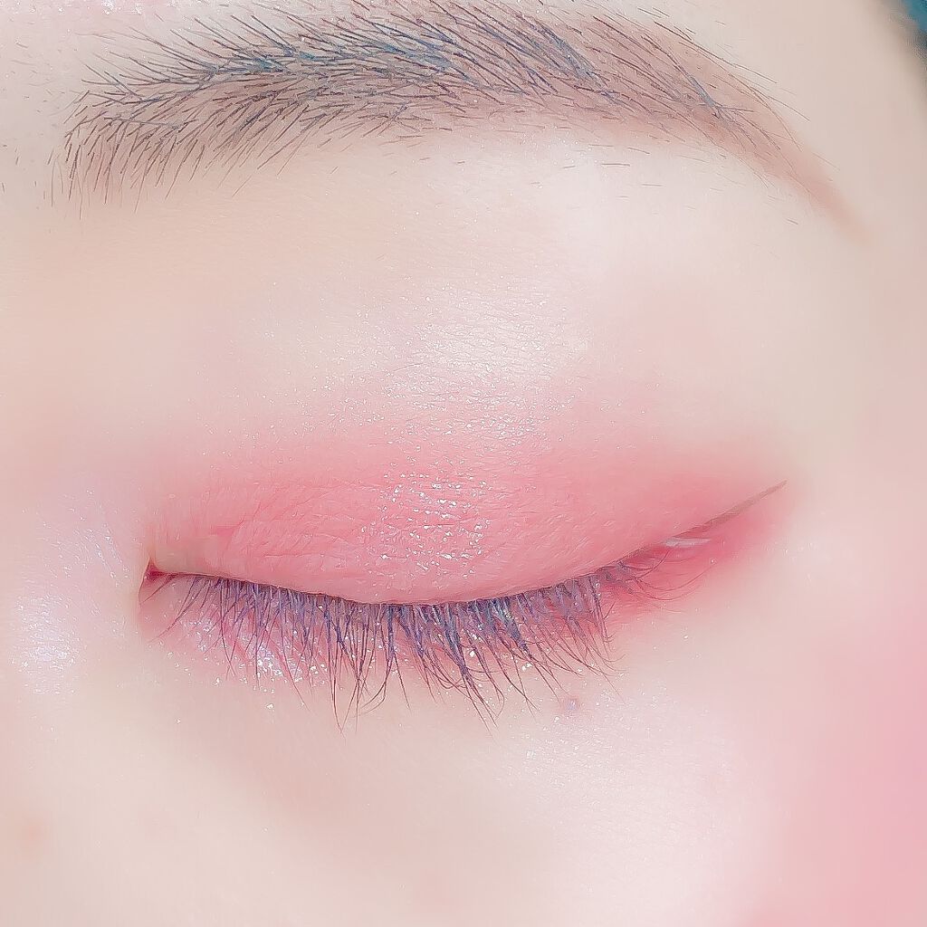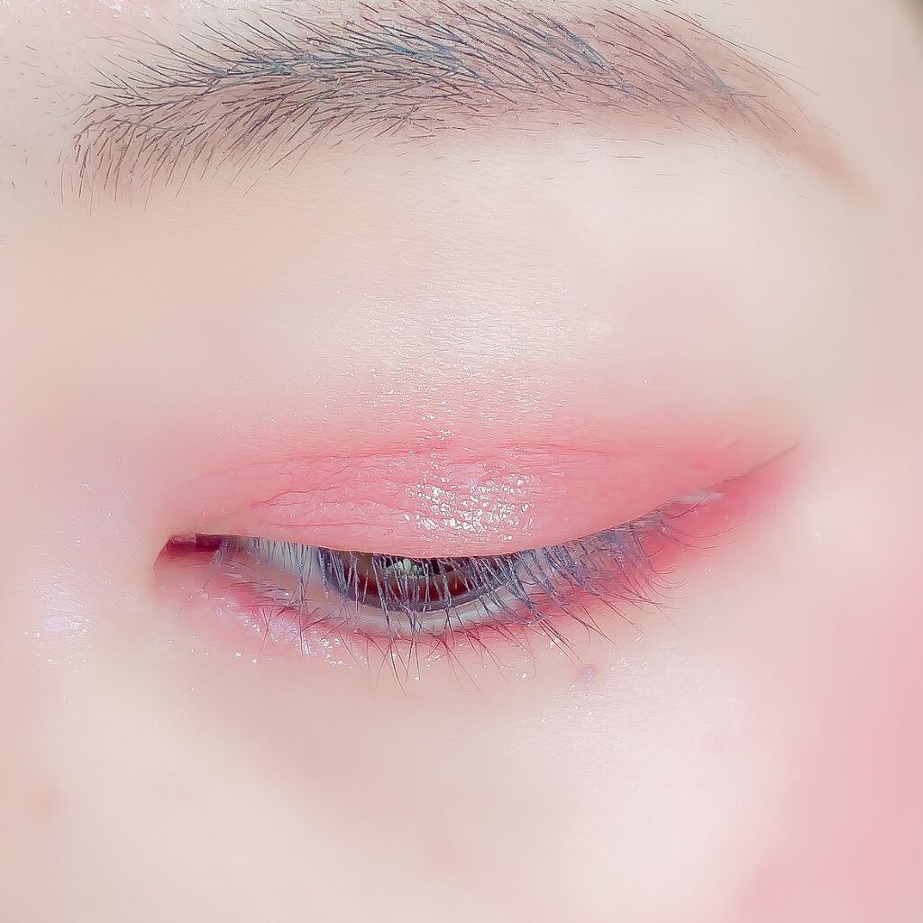 ピンクにグレージュも良いですね👌💗 今日は可愛らしい感じにしてみました💕 上下瞼黒目〜目頭側にラメを塗ってキラキラさせております🤩 目尻はマットのピンクを濃いめに重ねて💗 グレージュのアイライナーと相性◎