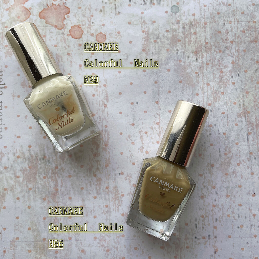 【爽やかな印象にも仕上がります💅🏻】★キャンメイク カラフルネイルズ N28☆キャンメイク カラフルネイルズ N20①ベースコートを塗ります。お好きなベースコートを塗り、乾かします。②全ての爪にN28を2度塗りします。しっかり乾かします。③親...
