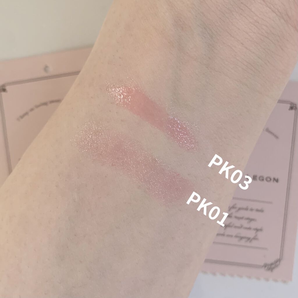 - <PK01 ほんのり桜色> スクワラン、リンゴ酸ジイソステアリル、ダイマージリノール酸(フィトステリル/イソステアリル/セチル/ステアリル/ベヘニル)、イソノナン酸イソトリデシル、トリ(カプリル酸/カプリン酸)グリセリル、トリイソステアリン酸ポリグリセリル-2、(イソステアリン酸ポリグリセリル-2/ダイマージリノール酸)コポリマー、ポリエチレン、水添ポリイソブテン、パラフィン、マイクロクリスタリンワックス、ダイマージリノール酸ジ(イソステアリル/フィトステリル)、オタネニンジン根エキス、ソメイヨシノ葉エキス、パルミトイルトリペプチド-1、ラウロイルグルタミン酸ジ(コレステリル/オクチルドデシル)、BG、水、イソステアリン酸ソルビタン、ジメチコン、トリベヘニン、パルミチン酸エチルヘキシル、BHT、フェノキシエタノール、メチルパラベン、エチルパラベン、プロピルパラベン、ブチルパラベン、酸化チタン、マイカ、赤223、赤226 <PK01> スクワラン、リンゴ酸ジイソステアリル、ダイマージリノール酸(フィトステリル/イソステアリル/セチル/ステアリル/ベヘニル)、イソノナン酸イソトリデシル、トリ(カプリル酸/カプリン酸)グリセリル、トリイソステアリン酸ポリグリセリル-2、(イソステアリン酸ポリグリセリル-2/ダイマージリノール酸)コポリマー、ポリエチレン、水添ポリイソブテン、パラフィン、マイクロクリスタリンワックス、ダイマージリノール酸ジ(イソステアリル/フィトステリル)、オタネニンジン根エキス、ソメイヨシノ葉エキス、パルミトイルトリペプチド-1、ラウロイルグルタミン酸ジ(コレステリル/オクチルドデシル)、BG、水、イソステアリン酸ソルビタン、ジメチコン、トリベヘニン、パルミチン酸エチルヘキシル、BHT、フェノキシエタノール、メチルパラベン、エチルパラベン、プロピルパラベン、ブチルパラベン、酸化チタン、マイカ、赤223、赤226 <RD01 燃ゆる紅桜色(プランパー)> スクワラン、リンゴ酸ジイソステアリル、ダイマージリノール酸(フィトステリル/イソステアリル/セチル/ステアリル/ベヘニル)、イソノナン酸イソトリデシル、トリ(カプリル酸/カプリン酸)グリセリル、トリイソステアリン酸ポリグリセリル-2、(イソステアリン酸ポリグリセリル-2/ダイマージリノール酸)コポリマー、合成ワックス、パラフィン、水添ポリイソブテン、マイクロクリスタリンワックス、ダイマージリノール酸ジ(イソステアリル/フィトステリル)、アテロコラーゲン、コンドロイチン硫酸Na、ソメイヨシノ葉エキス、パルミトイルトリペプチド-1、メントキシプロパンジオール、ラウロイルグルタミン酸ジ(コレステリル/オクチルドデシル)、BG、合成フルオロフロゴパイト、水、乳酸、イソステアリン酸ソルビタン、ジメチコン、テトライソステアリン酸ペンタエリスリチル、トリヒドロキシステアリン、トリベヘニン、パルミチン酸エチルヘキシル、ポリエチレン、バニリルブチル、BHT、トコフェロール、フェノキシエタノール、メチルパラベン、エチルパラベン、プロピルパラベン、ブチルパラベン、酸化スズ、酸化チタン、酸化鉄、赤201、赤202、赤223、橙201、黄4 <PK01 ほんのり桜色 (限定パッケージ)> スクワラン、リンゴ酸ジイソステアリル、ダイマージリノール酸(フィトステリル/イソステアリル/セチル/ステアリル/ベヘニル)、イソノナン酸イソトリデシル、トリ(カプリル酸/カプリン酸)グリセリル、トリイソステアリン酸ポリグリセリル-2、(イソステアリン酸ポリグリセリル-2/ダイマージリノール酸)コポリマー、ポリエチレン、水添ポリイソブテン、パラフィン、マイクロクリスタリンワックス、ダイマージリノール酸ジ(イソステアリル/フィトステリル)、オタネニンジン根エキス、ソメイヨシノ葉エキス、パルミトイルトリペプチド-1、ラウロイルグルタミン酸ジ(コレステリル/オクチルドデシル)、BG、水、イソステアリン酸ソルビタン、ジメチコン、トリベヘニン、パルミチン酸エチルヘキシル、BHT、フェノキシエタノール、メチルパラベン、エチルパラベン、プロピルパラベン、ブチルパラベン、酸化チタン、マイカ、赤223、赤226 <PK01> スクワラン、リンゴ酸ジイソステアリル、ダイマージリノール酸(フィトステリル/イソステアリル/セチル/ステアリル/ベヘニル)、イソノナン酸イソトリデシル、トリ(カプリル酸/カプリン酸)グリセリル、トリイソステアリン酸ポリグリセリル-2、(イソステアリン酸ポリグリセリル-2/ダイマージリノール酸)コポリマー、ポリエチレン、水添ポリイソブテン、パラフィン、マイクロクリスタリンワックス、ダイマージリノール酸ジ(イソステアリル/フィトステリル)、オタネニンジン根エキス、ソメイヨシノ葉エキス、パルミトイルトリペプチド-1、ラウロイルグルタミン酸ジ(コレステリル/オクチルドデシル)、BG、水、イソステアリン酸ソルビタン、ジメチコン、トリベヘニン、パルミチン酸エチルヘキシル、BHT、フェノキシエタノール、メチルパラ
