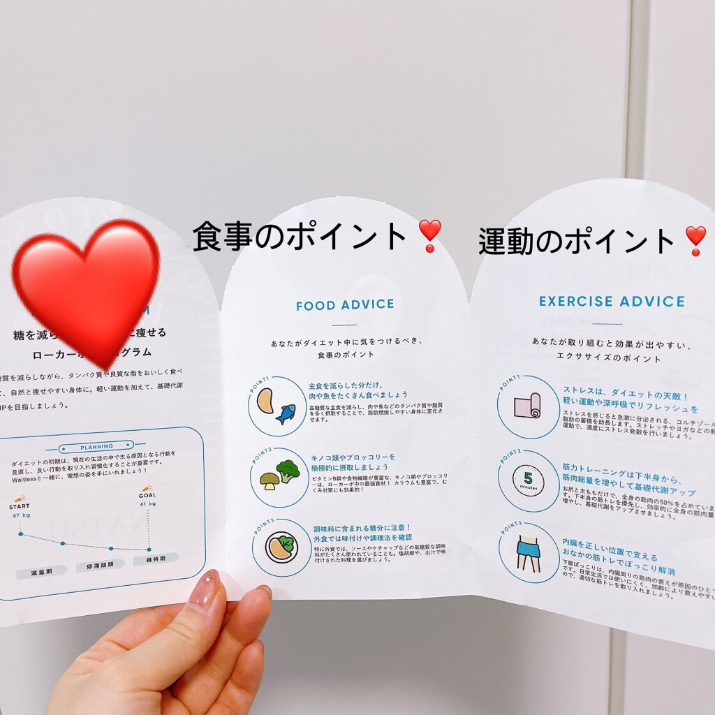 食事・運動・サプリメントの三本柱で構成されたパーソナライズメニューが届くボディメイクサービス。生活習慣や食事、ダイエット目標など23の質問に答えるだけで、自分に合ったプログラムとサプリメントが届きます。私は「糖を減らして、脂肪燃焼を加速させる...