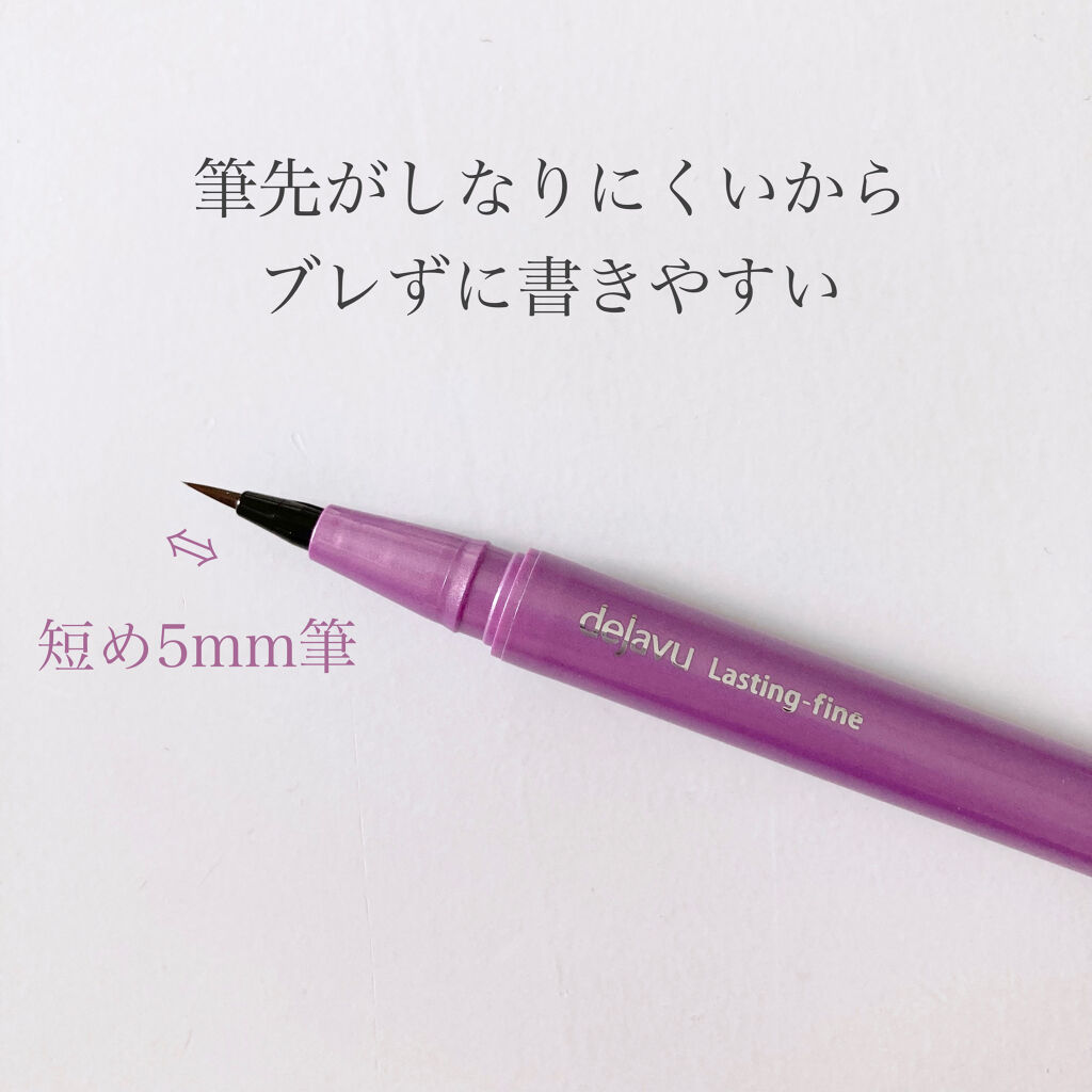 💜dejavuラスティンファインEショート筆リキッドミディアムブラウン💜筆先が“5mmのショート筆”で、筆が長すぎずしなりにくいため、安定して極細ラインが描けるよう設計されていてブレずに狙ったラインが描きやすいアイライナーです☺️皮脂・汗・涙...