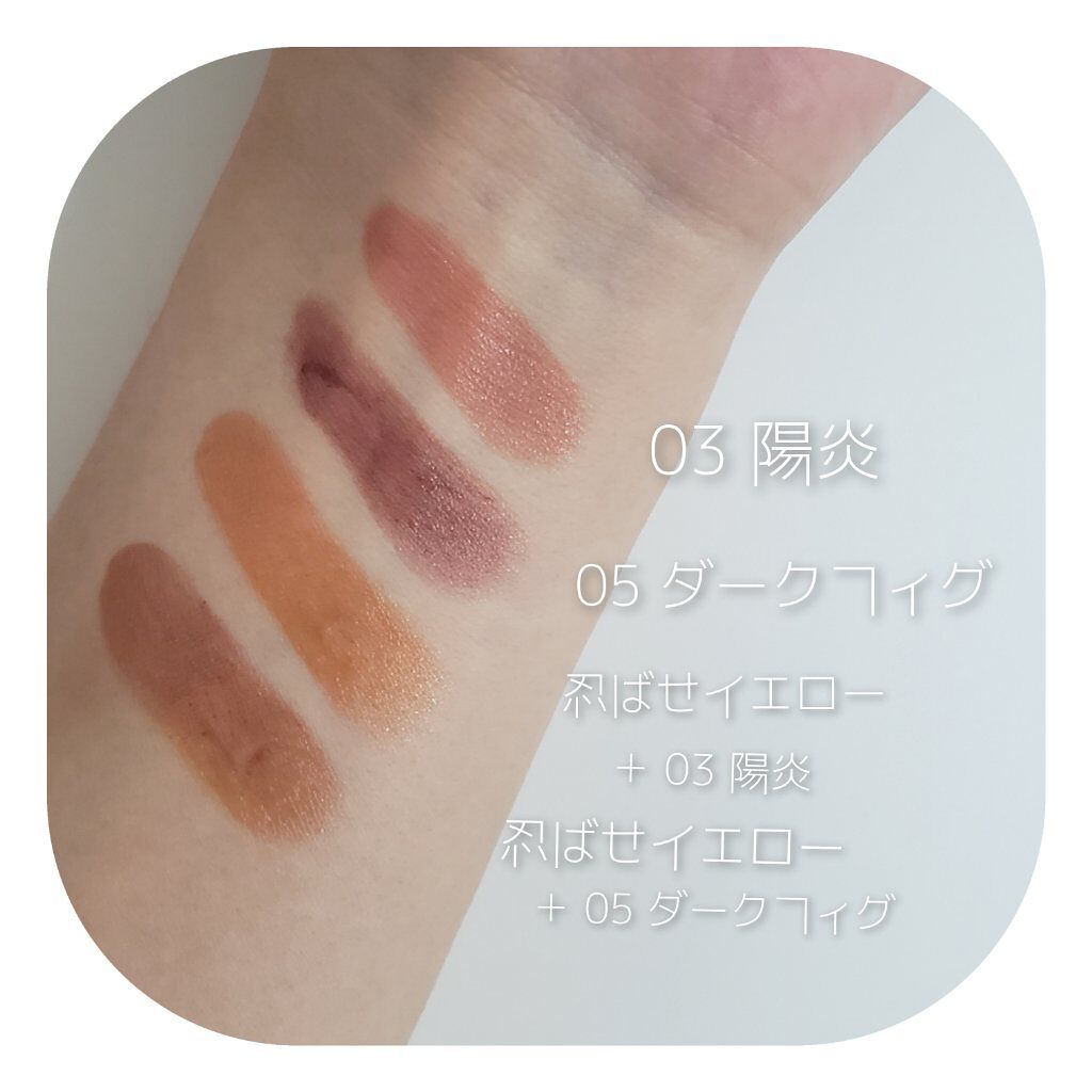- <01 欲望の塊> テトライソステアリン酸ジペンタエリスリチル、トリ(カプリル酸/カプリン酸)グリセリル、オクチルドデカノール、ラウロイルグルタミン酸ジ(フィトステリル/オクチルドデシル)、ビスアルキル(C16-18)グリセリルウンデシルジメチコン、イソノナン酸イソトリデシル、水添ポリイソブテン、ラウロイルグルタミン酸ジ(オクチルドデシル/フィトステリル/ベヘニル)、パラフィン、合成ワックス、ダイマージリノール酸(フィトステリル/イソステアリル/セチル/ステアリル/ベヘニル)、マイクロクリスタリンワックス、水添マイクロクリスタリンワックス、ヒドロキシステアリン酸エチルヘキシル、トコフェロール、ホホバ種子油、オリーブ果実油、アーモンド油、(エチレン/プロピレン)コポリマー、ポリエチレン、ジメチコン、(+/-)(チタン/酸化チタン)焼結物、マイカ、ラウロイルアスパラギン酸Na、ラウロイルリシン、塩化亜鉛、酸化チタン、酸化鉄、水酸化Al、硫酸Ba、トリイソステアリン酸イソプロピルチタン、酸化スズ、ホウケイ酸(Ca/Al)、合成フルオロフロゴパイト、黄4、黄5、赤104(1)、赤201、赤202 <02 ピンクバナナ> テトライソステアリン酸ジペンタエリスリチル、トリ(カプリル酸/カプリン酸)グリセリル、オクチルドデカノール、ラウロイルグルタミン酸ジ(フィトステリル/オクチルドデシル)、ビスアルキル(C16-18)グリセリルウンデシルジメチコン、イソノナン酸イソトリデシル、水添ポリイソブテン、ラウロイルグルタミン酸ジ(オクチルドデシル/フィトステリル/ベヘニル)、パラフィン、合成ワックス、ダイマージリノール酸(フィトステリル/イソステアリル/セチル/ステアリル/ベヘニル)、マイクロクリスタリンワックス、水添マイクロクリスタリンワックス、ヒドロキシステアリン酸エチルヘキシル、トコフェロール、ホホバ種子油、オリーブ果実油、アーモンド油、(エチレン/プロピレン)コポリマー、ポリエチレン、ジメチコン、(+/-)(チタン/酸化チタン)焼結物、マイカ、ラウロイルアスパラギン酸Na、ラウロイルリシン、塩化亜鉛、酸化チタン、酸化鉄、水酸化Al、硫酸Ba、トリイソステアリン酸イソプロピルチタン、酸化スズ、ホウケイ酸(Ca/Al)、合成フルオロフロゴパイト、黄4、黄5、赤104(1)、赤201、赤202 <03 陽炎> テトライソステアリン酸ジペンタエリスリチル、トリ(カプリル酸/カプリン酸)グリセリル、オクチルドデカノール、ラウロイルグルタミン酸ジ(フィトステリル/オクチルドデシル)、ビスアルキル(C16-18)グリセリルウンデシルジメチコン、イソノナン酸イソトリデシル、水添ポリイソブテン、ラウロイルグルタミン酸ジ(オクチルドデシル/フィトステリル/ベヘニル)、パラフィン、合成ワックス、ダイマージリノール酸(フィトステリル/イソステアリル/セチル/ステアリル/ベヘニル)、マイクロクリスタリンワックス、水添マイクロクリスタリンワックス、ヒドロキシステアリン酸エチルヘキシル、トコフェロール、ホホバ種子油、オリーブ果実油、アーモンド油、(エチレン/プロピレン)コポリマー、ポリエチレン、ジメチコン、(+/-)(チタン/酸化チタン)焼結物、マイカ、ラウロイルアスパラギン酸Na、ラウロイルリシン、塩化亜鉛、酸化チタン、酸化鉄、水酸化Al、硫酸Ba、トリイソステアリン酸イソプロピルチタン、酸化スズ、ホウケイ酸(Ca/Al)、合成フルオロフロゴパイト、黄4、黄5、赤104(1)、赤201、赤202 <04 パンプキンワイン> テトライソステアリン酸ジペンタエリスリチル、トリ(カプリル酸/カプリン酸)グリセリル、オクチルドデカノール、ラウロイルグルタミン酸ジ(フィトステリル/オクチルドデシル)、ビスアルキル(C16-18)グリセリルウンデシルジメチコン、イソノナン酸イソトリデシル、水添ポリイソブテン、ラウロイルグルタミン酸ジ(オクチルドデシル/フィトステリル/ベヘニル)、パラフィン、合成ワックス、ダイマージリノール酸(フィトステリル/イソステアリル/セチル/ステアリル/ベヘニル)、マイクロクリスタリンワックス、水添マイクロクリスタリンワックス、ヒドロキシステアリン酸エチルヘキシル、トコフェロール、ホホバ種子油、オリーブ果実油、アーモンド油、(エチレン/プロピレン)コポリマー、ポリエチレン、ジメチコン、(+/-)(チタン/酸化チタン)焼結物、マイカ、ラウロイルアスパラギン酸Na、ラウロイルリシン、塩化亜鉛、酸化チタン、酸化鉄、水酸化Al、硫酸Ba、トリイソステアリン酸イソプロピルチタン、酸化スズ、ホウケイ酸(Ca/Al)、合成フルオロフロゴパイト、黄4、黄5、赤104(1)、赤201、赤202 <05 ダークフィグ> テトライソステアリン酸ジペンタエリスリチル、トリ(カプリル酸/カプリン酸)グリセリル、オクチルドデカノール、ラウロイルグルタミン酸ジ(フィトステリル/オクチルドデシル)、ビスアルキル(C16-18)グリセリルウンデシルジメチコン、イソノナン酸イソトリデシル、水添ポリイソブテン、ラウロイルグルタミン酸ジ(オクチルドデシル/フィトステリル/ベヘニル)、