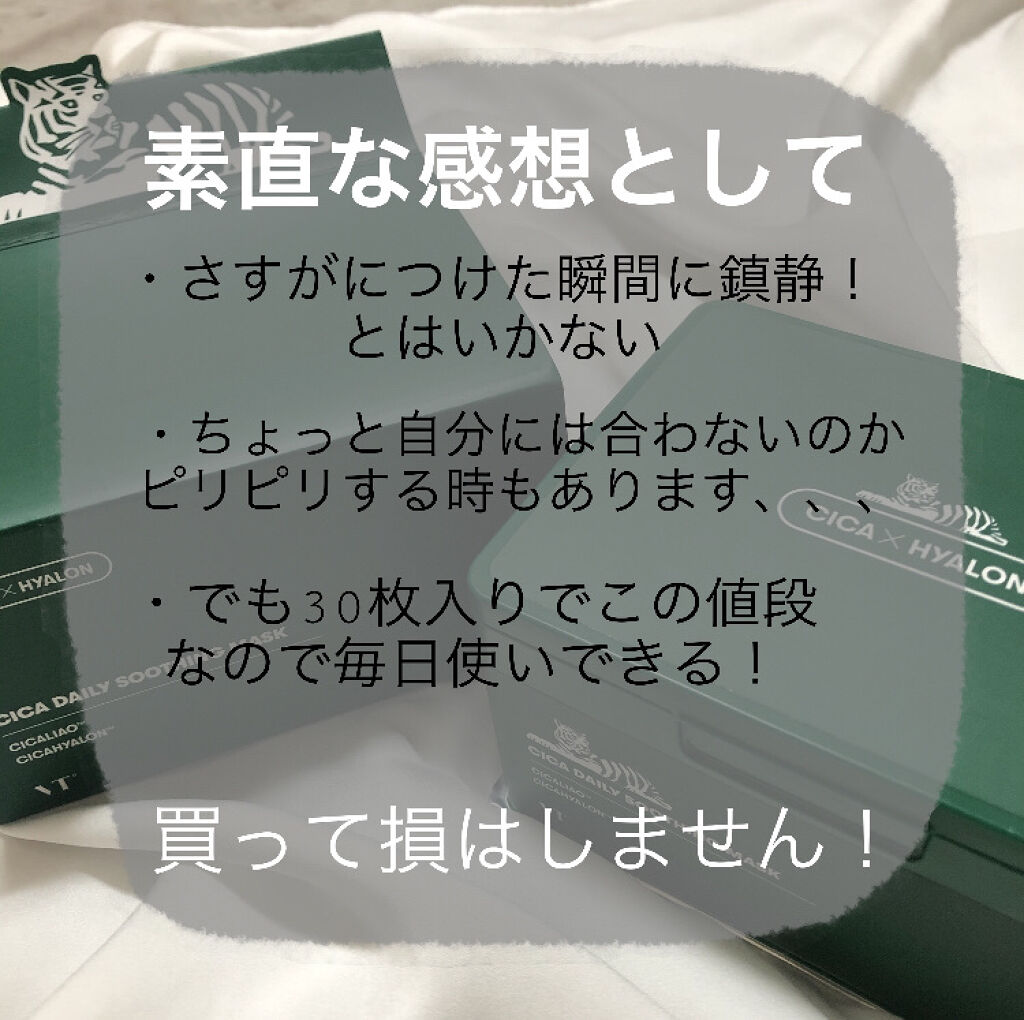みなさんこんばんは!はなまる。です😉今日は最近よくみかける!#vt_cicaデイリースージングマスクについて正直レビューして行きたいとおもいます!ツボクサエキス、3重ヒアルロン酸を含んでるみたい、、、🥺🥇Qoo10Japanビューティー販売部...
