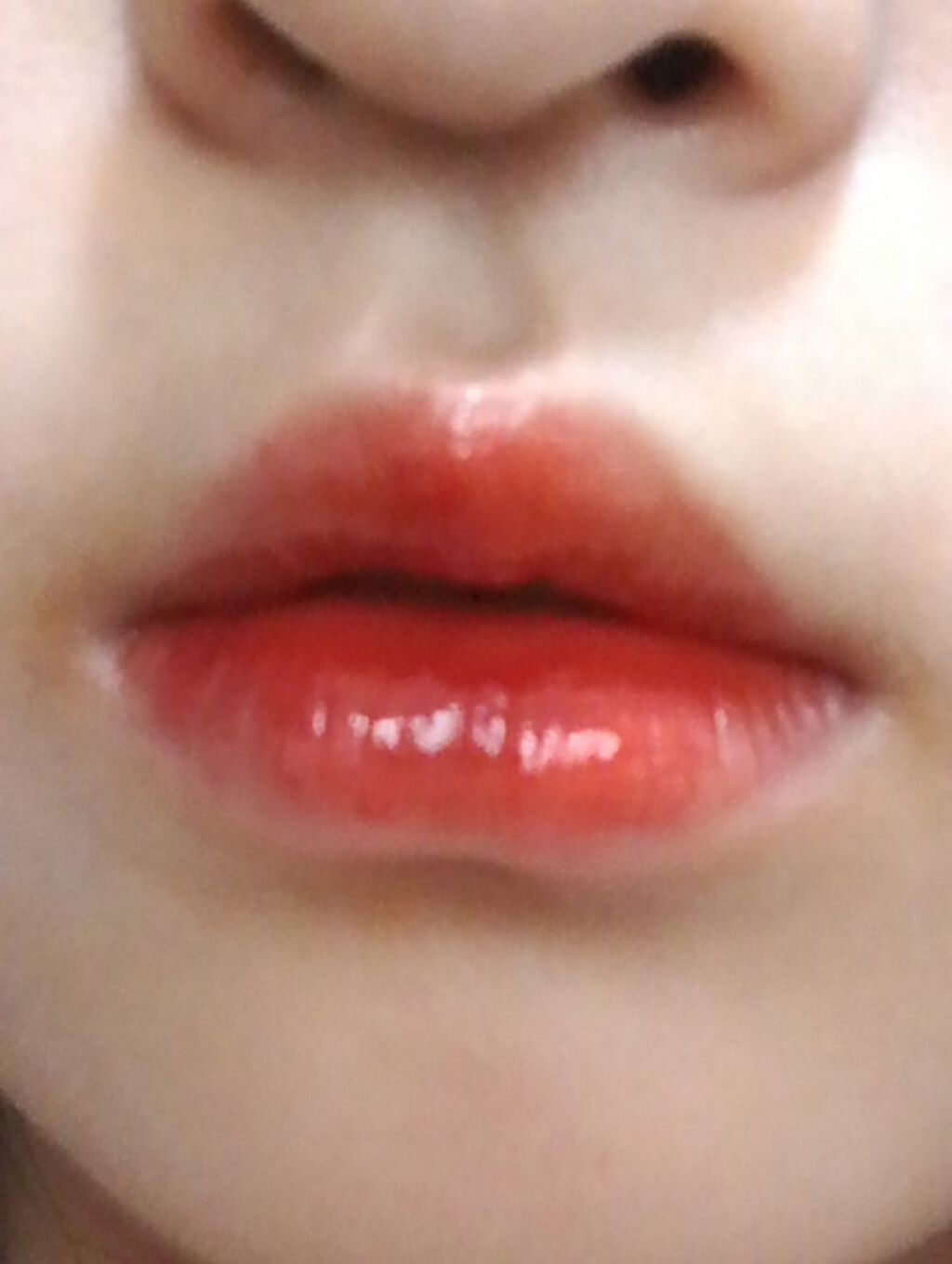 私はいつもrom&ndのジューシーラスティングティントは二度塗りしています! 一度塗りは少しうるうる感があって若干ナチュラルな仕上がり 二度塗りはちゅるちゅる感があって濡れたようなツヤがある ジューシーラスティングティントは二度塗りでもそこまで色が濃くならなくてうるうる感がちゅるちゅる感に進化します(?) rom&ndのティントは絶対んまんましないでください! ツヤが消えてしまいます! グラデリップにするなら容器のふちで調整しながら塗りますっ! これが私のジューシーラスティングティントの塗りかたですっ!