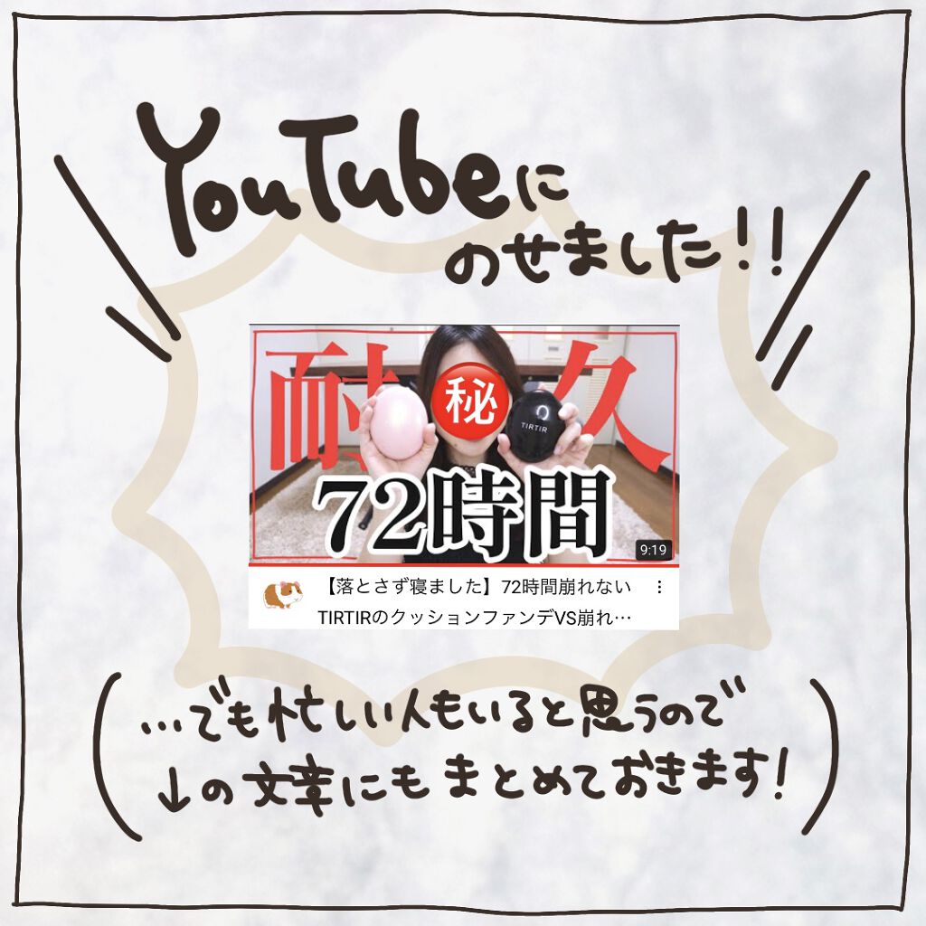 脂性肌の方におすすめ。 長時間メイクキープ。高いカバー力とさらっとした仕上がりが欲しい方へ! TIRTIRのクッションの中ではこのピンクのタイプはマットみたいですが少しツヤ感もあるように思いました✨ 日焼け止めとこのクッションのみでしたが崩れもほとんどなかった👍✨