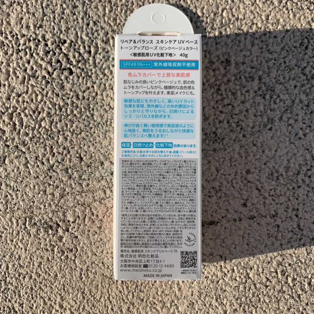 - ノンケミカルのゆらぎ敏感肌向けスキンケアUVベースの新色が誕生!SPF49 PA+++ ①紫外線カット効果 SPF49 PA+++の高い紫外線カット効果 紫外線吸収剤フリーの安心処方 ②健康的な素肌感仕上げ 肌なじみの良いピンクベージュが黄身を消して色ムラをカバー 健康的な血色感を演出し、トーンアップ効果をもたらします ③肌保護効果 肌のうるおいを保つスキンケア効果で、ゆらがない肌に 導きます。