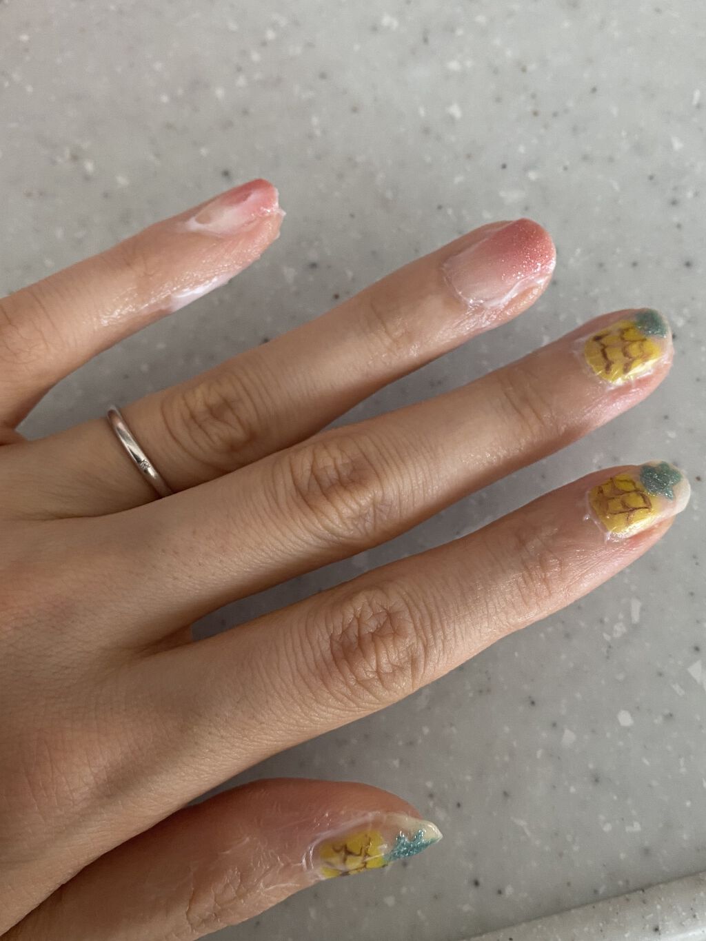 指がピカピカチュウ🤣🤣🤣 パイナポーネイルもスタバも気になるンダル💕