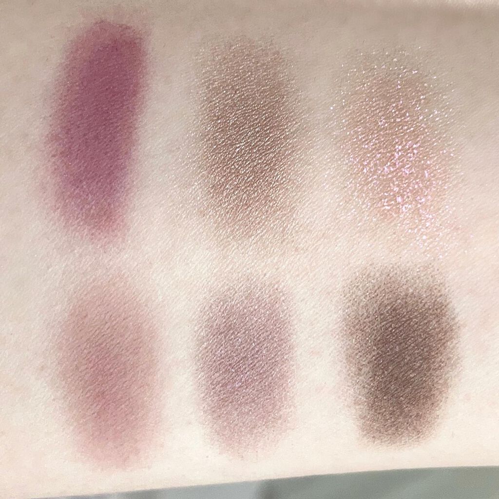 プライマーを使って、密度の高い感じのブラシで 左下ローズを置くように塗る。 ぼかすのは境目だけにして、しっかり色を出す。 右下のダークブラウンと思っていた濃い色は メイクしてみたら結構紫っぽく出たんですが これがまぁくすみ感が強くて…w くすみは何より苦手だよ😂😂 右上のラメはぺかっと光るのがとっても良い!!🤩 割とシンプルなメイクになるな~と思うけど しっかり色出せたので無事使っていけそうです💃🏼💓