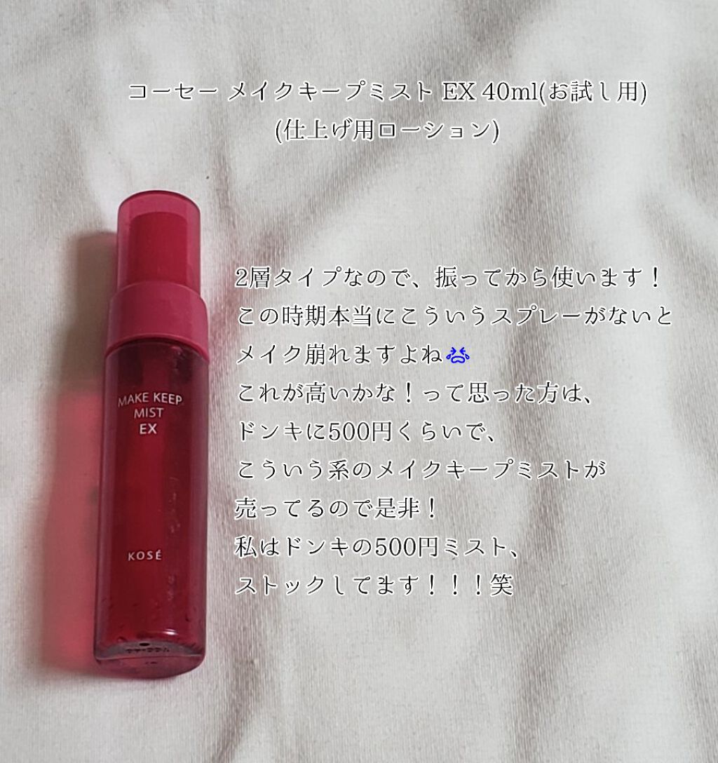 | フィックスミストランキング第5位 | マスクをすると本当に崩れないです……!特に摩擦に対しての崩れにかなり強くなります!!✨ | 詳細を見る | |
