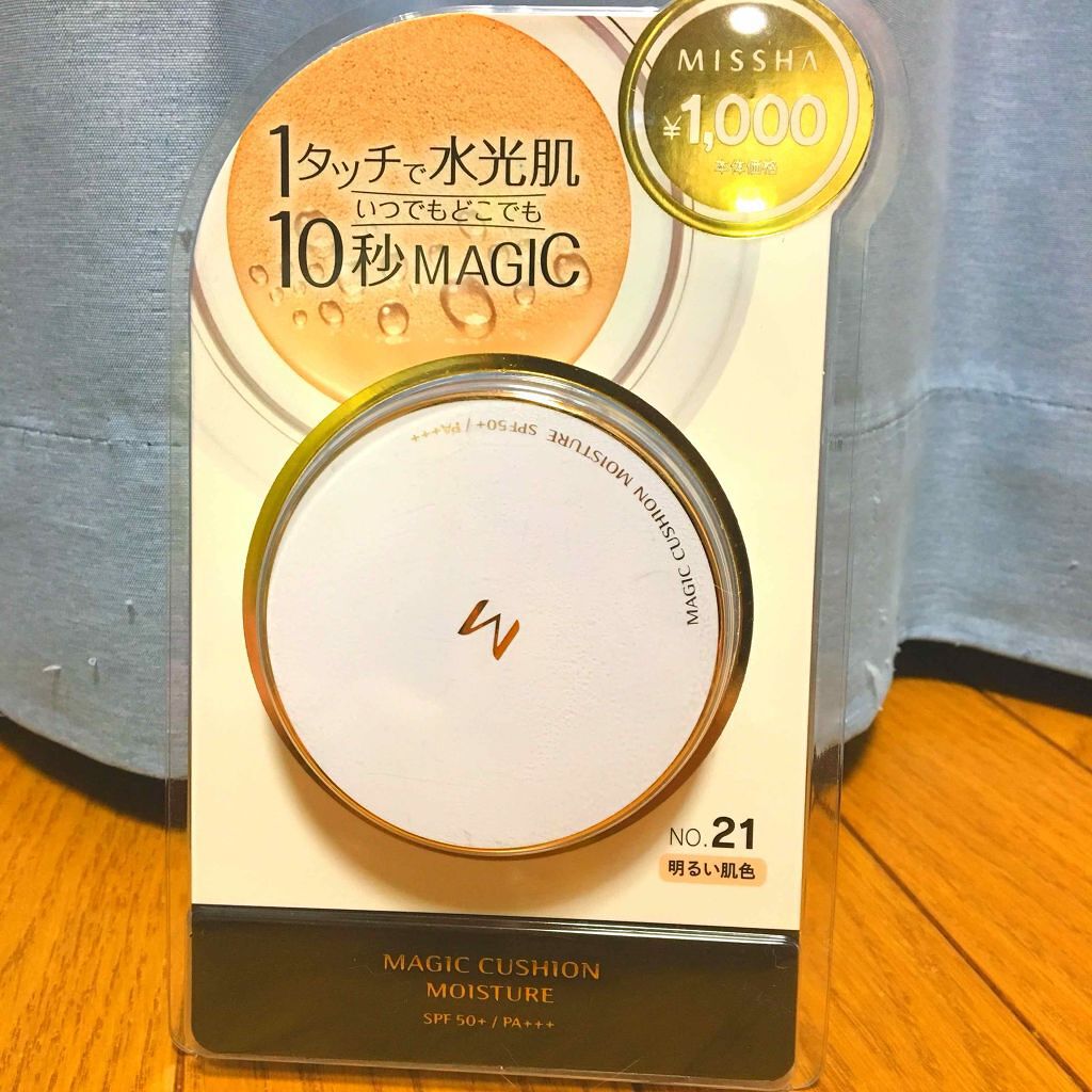 ミシャMクッションファンデーションモイスチャーみずみずしい水光ツヤ肌クッションファンデ!カバー力効果、ツヤ感効果のおかげでキメの整ったきれいなお肌にしてくれるよ🫶3種類の美容ウォーターで水分をチャージ!仕事柄、汗をかくのでみずみずしいクッショ...